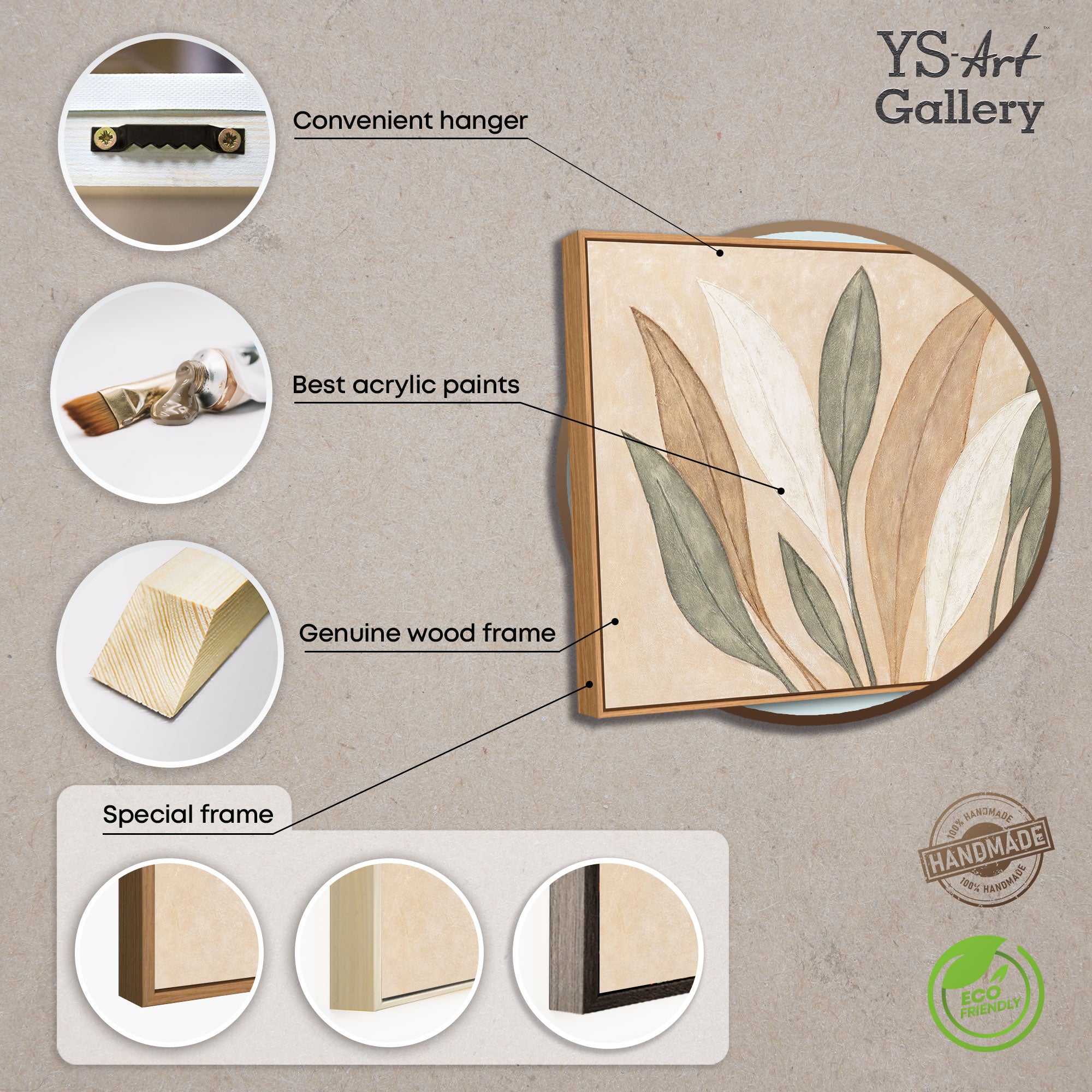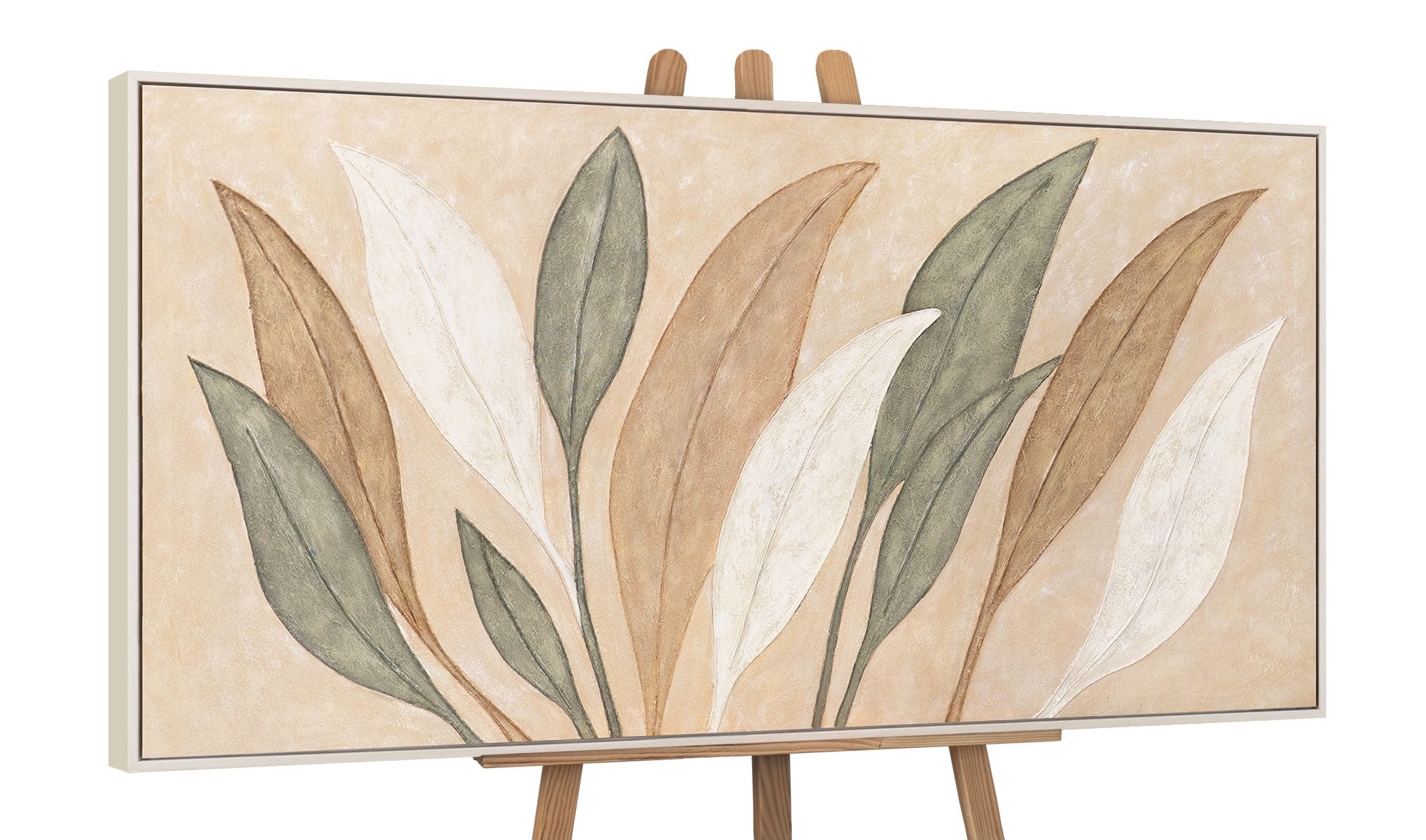 Bringen Sie die Schönheit der Natur in Ihr Zuhause mit dem handgemalten Leinwandbild „Tanz der Blätter“. Sanfte Erdtöne in Beige, Braun und Grün verschmelzen harmonisch mit klaren Linien und strukturierter Oberfläche. Die elegante Komposition vermittelt Ruhe und Natürlichkeit, während die organischen Blattformen eine zeitlose Leichtigkeit ausstrahlen.