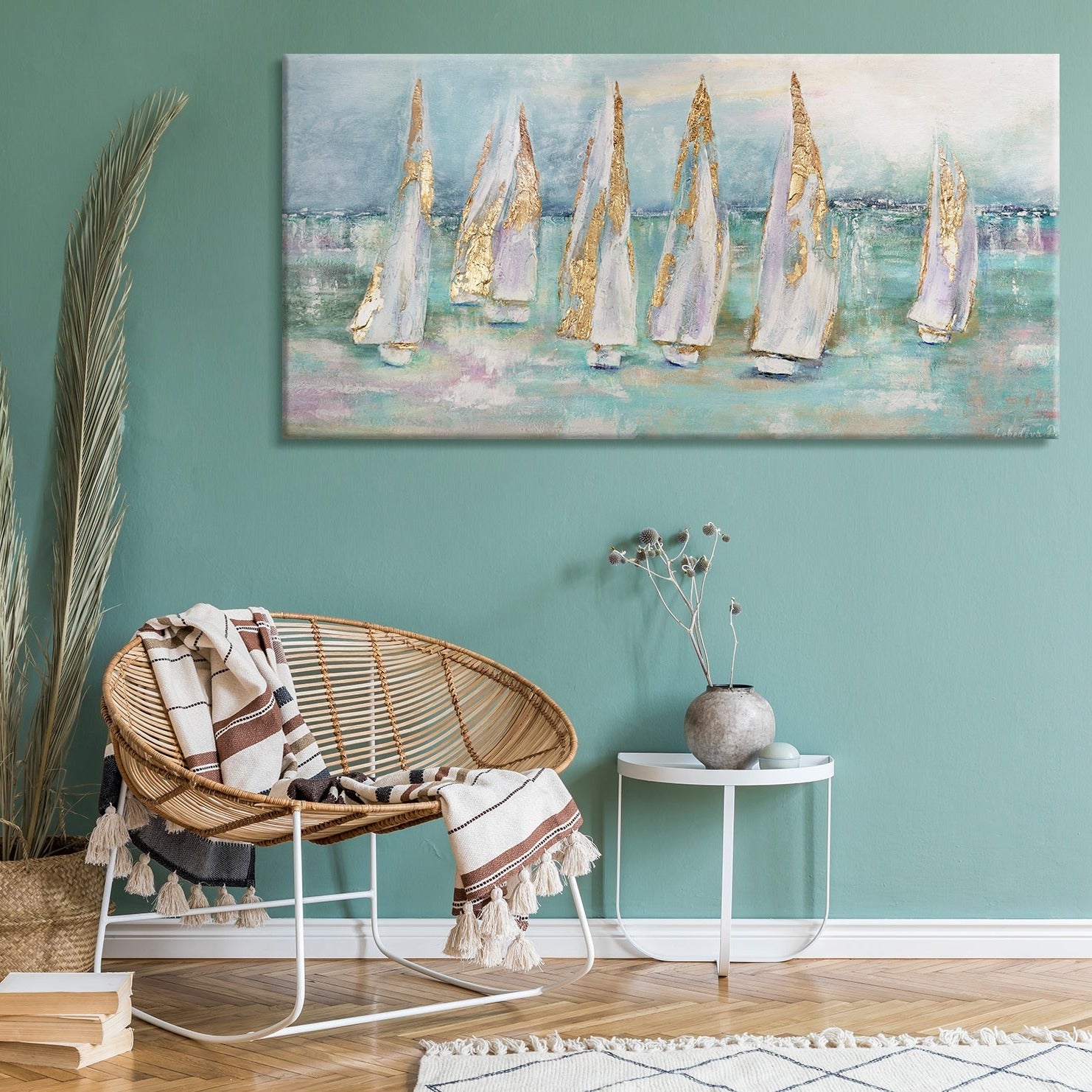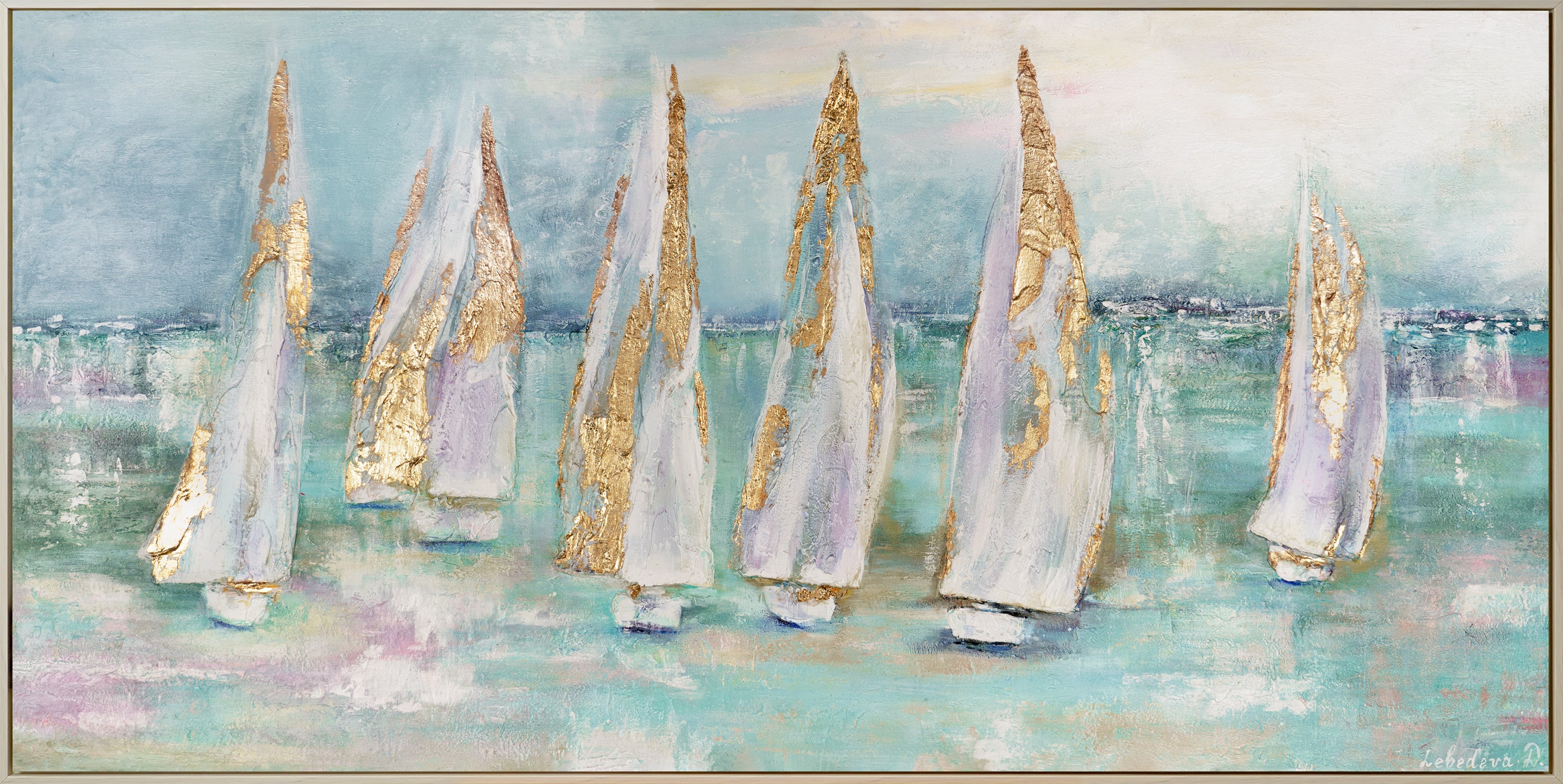 Handgeschilderd Acrylschilderij Zeegezicht Abstract "Zeilboten"