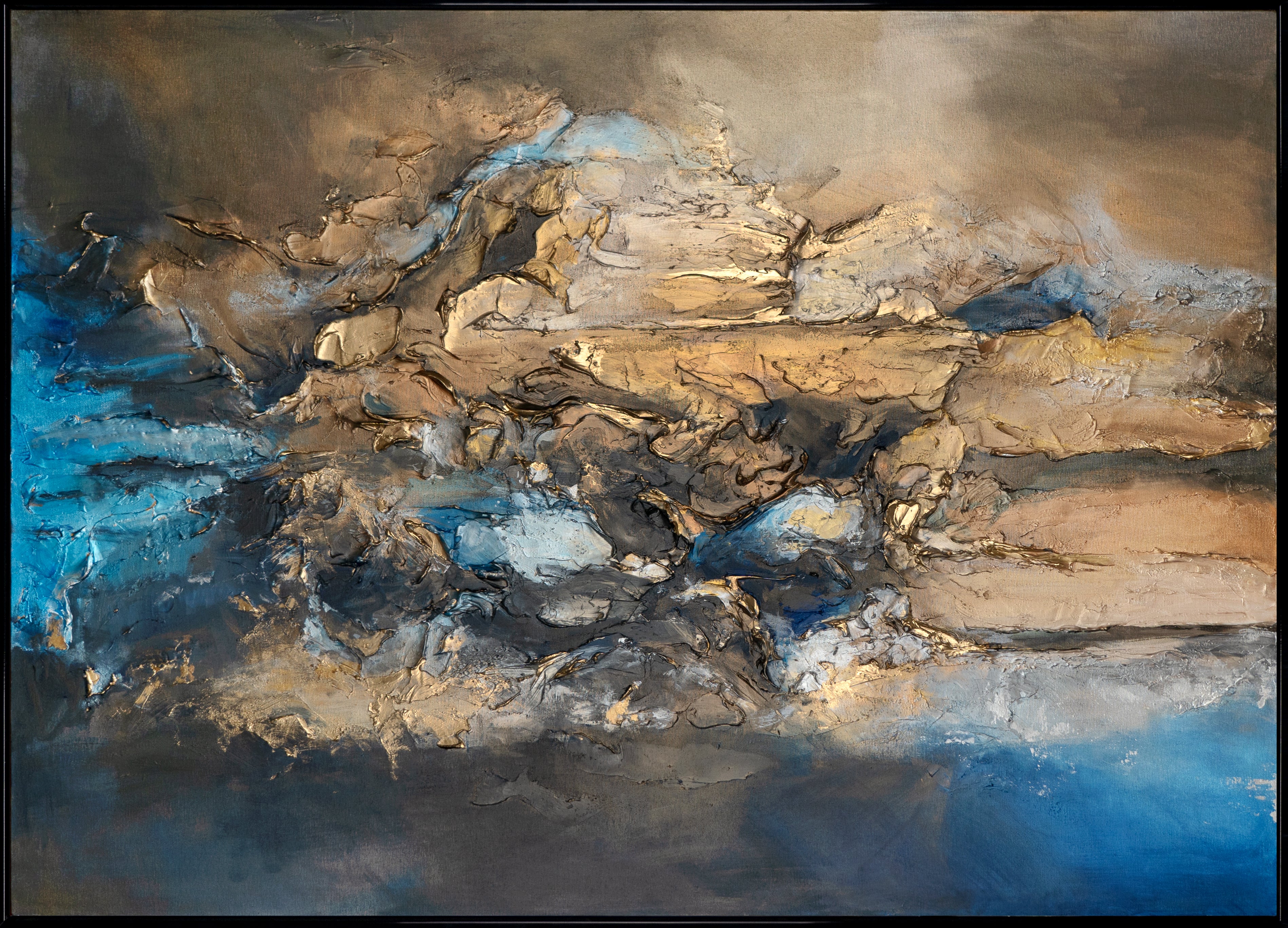 • Abstrakte Kunst, Texturierte Leinwand, Goldene Akzente, Originalgemälde, Handgemalte Kunst, Moderne Wandkunst, Kunst für Wohnzimmer, Zeitgenössische Kunst, Künstlerische Wanddekoration, Einzigartige Inneneinrichtung, Kunst mit Struktur, Exklusive Wandkunst, Hochwertige Wohnkultur, Wandkunst mit Rahmen