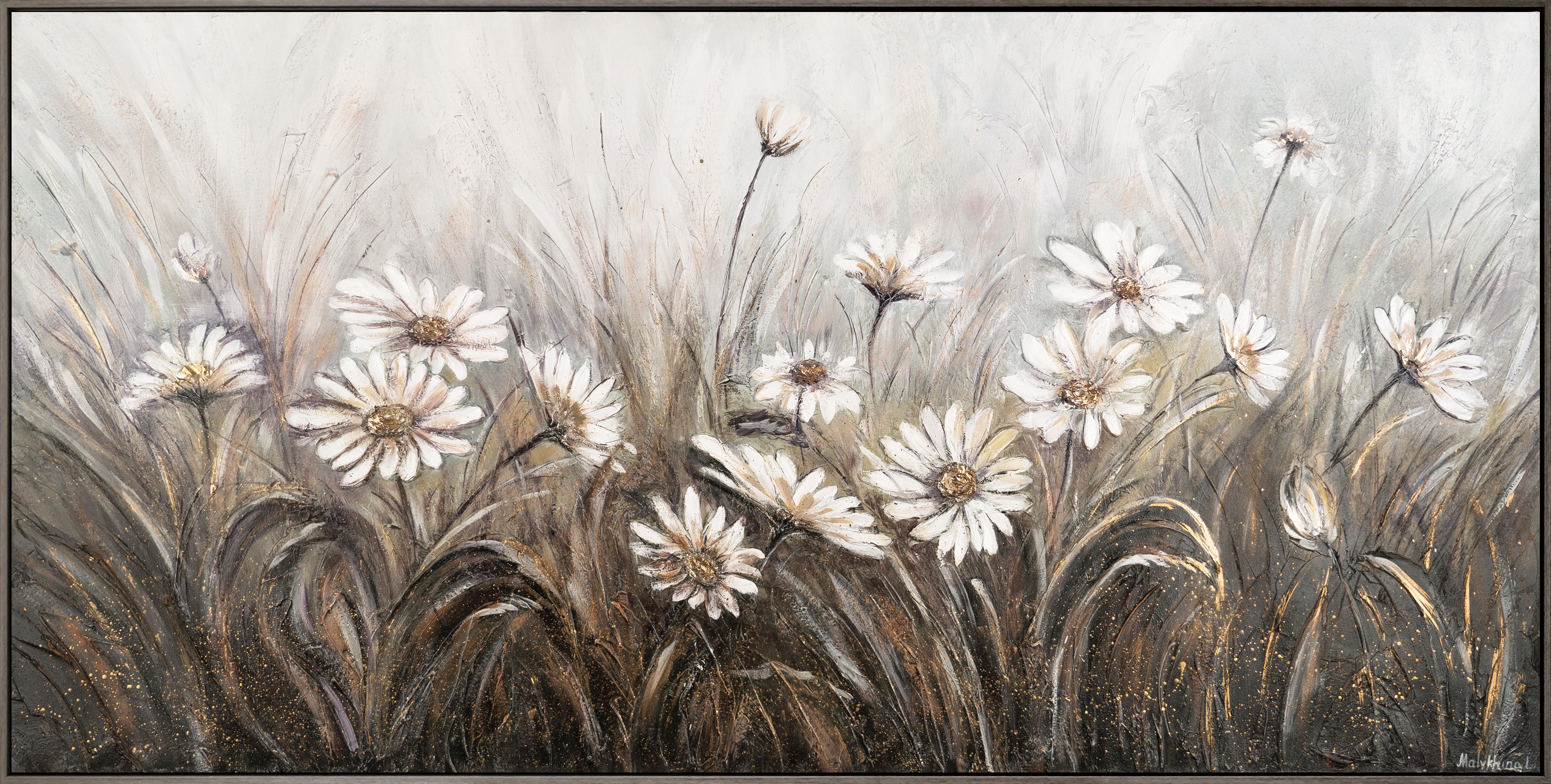 Dit kunstwerk is perfect voor het toevoegen van een positieve sfeer en een moderne flair aan je woonkamer. Madeliefjes worden volgens Feng Shui geassocieerd met levensenergie en helende krachten, en dit schilderij kan zowel de esthetiek als de energie van je huis verbeteren.