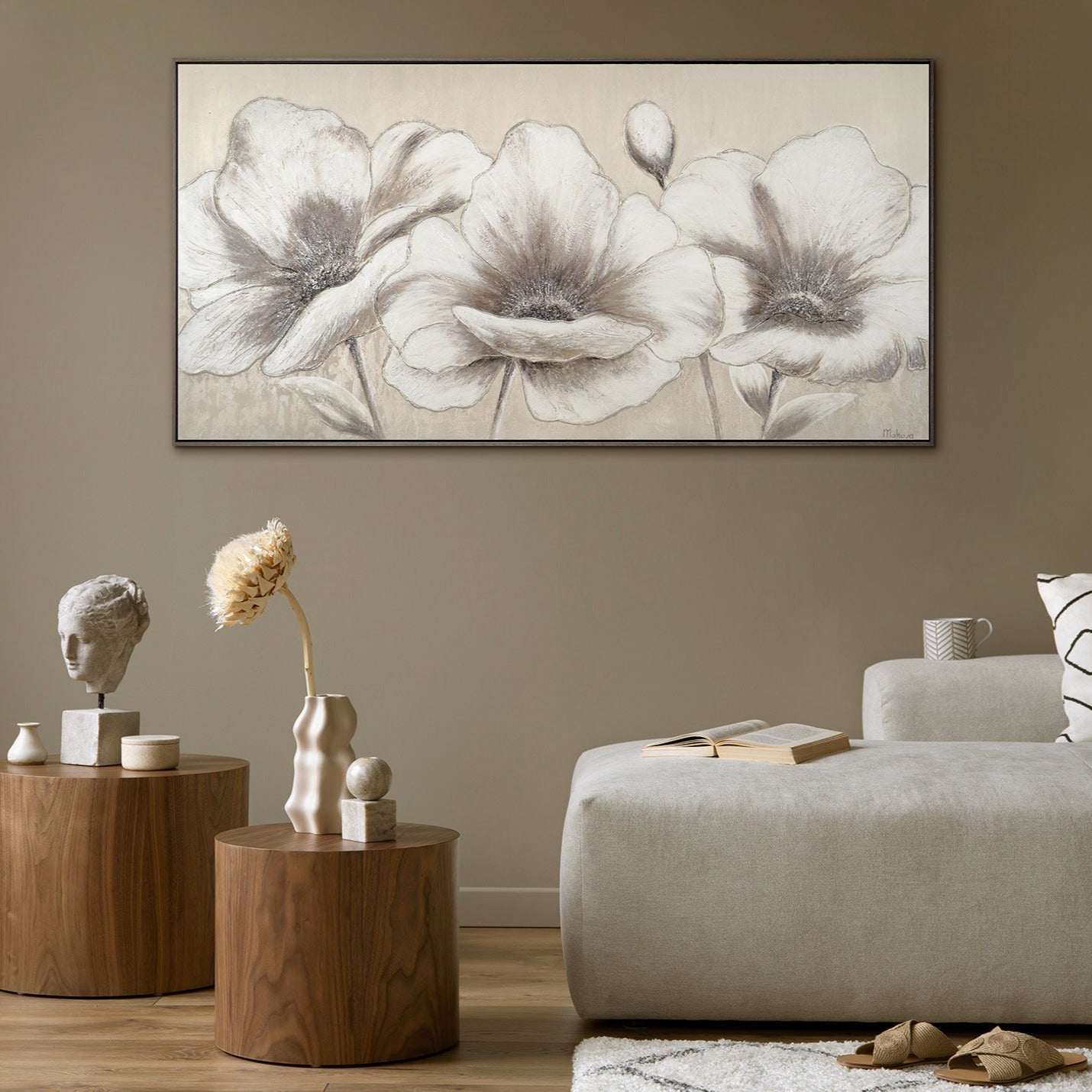 • Handgemaakte bloemen schilderij op canvas – Abstracte bloemen in grijs