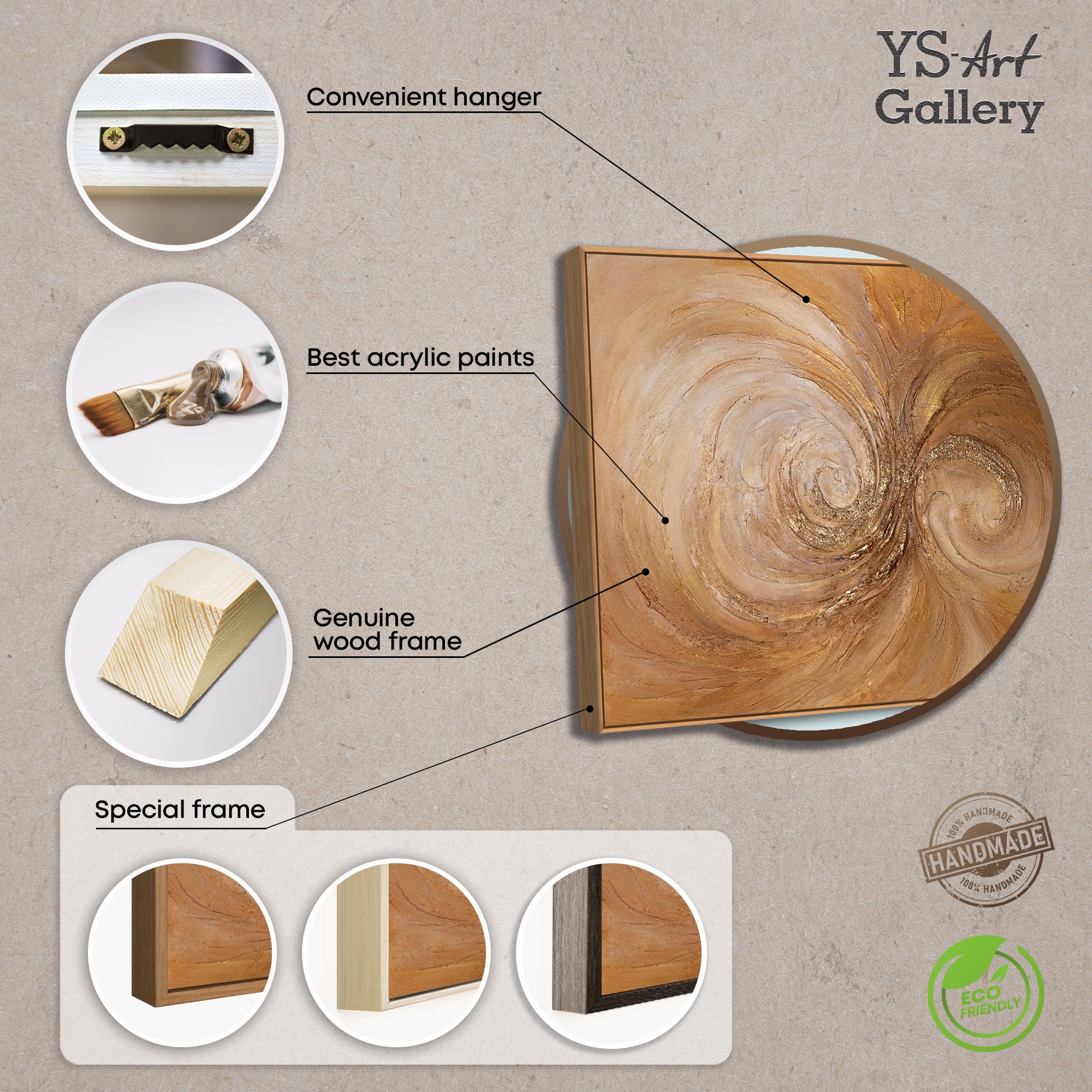 Abstraktes Acrylbild in Gold Braun – strukturierte Wandkunst mit Rahmen „Wirbelwind der Wärme“