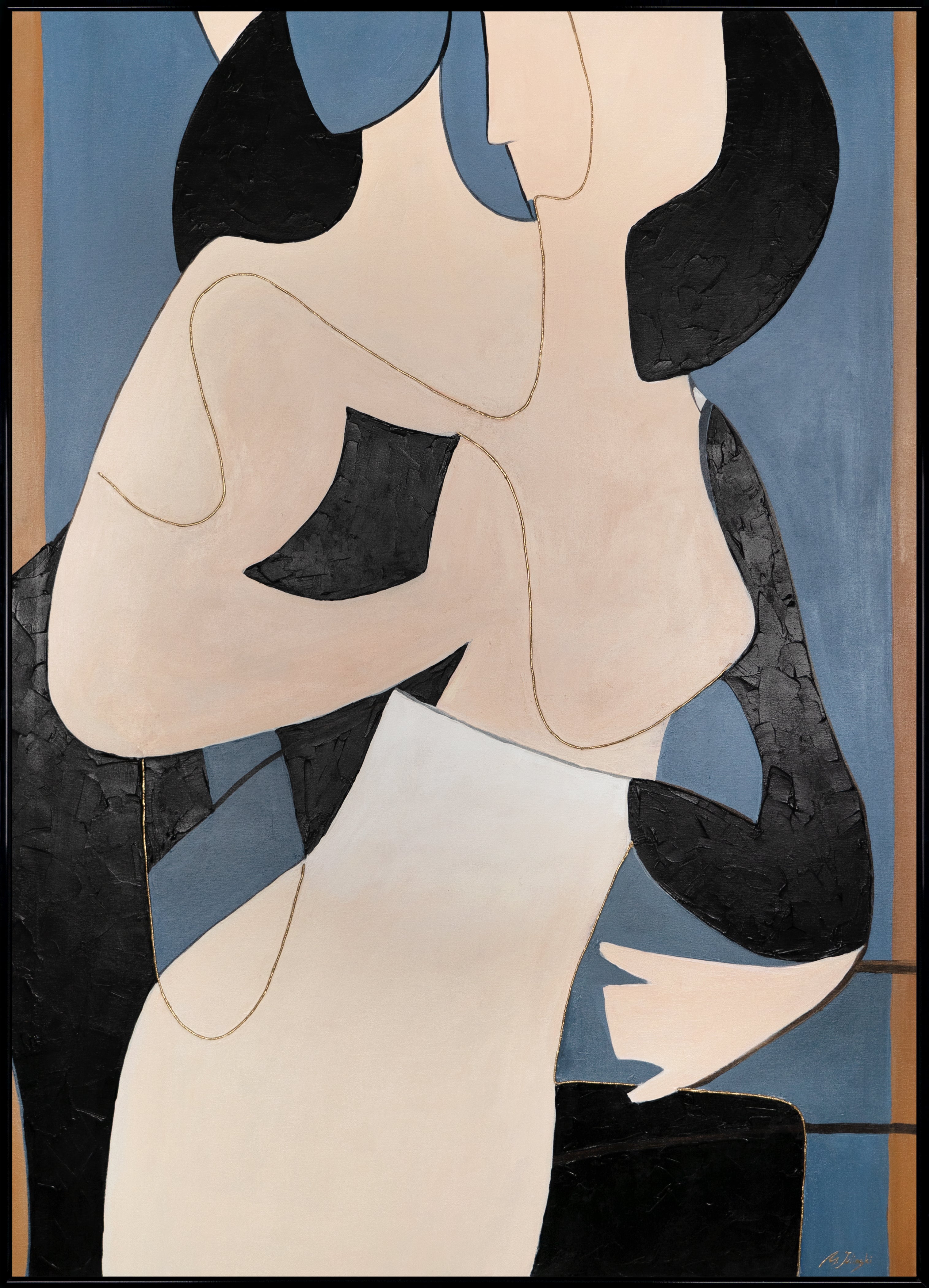 Ontdek de schoonheid van moderne kunst met onze handgeschilderde, abstracte, moderne schilderijen. Dit unieke werk is gemaakt door een getalenteerde kunstenaar en toont twee figuren in een betoverende abstracte stijl die uw interieur naar een nieuw designniveau zullen tillen. Het schilderij heeft een afmeting van 60x90 cm en is geschilderd op hoogwaardig canvas, wat een lange levensduur garandeert.