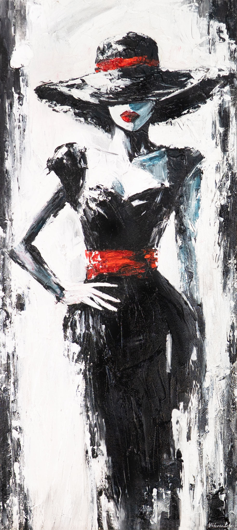 “Mysterious Stranger” is een met de hand geschilderd acrylschilderij op canvas, waarbij expressieve penseelstreken worden gebruikt om een abstract silhouet van een elegante vreemdeling in zwart, wit en rood te creëren. De sculpturale structuur en het sterke kleurcontrast creëren een mysterieuze, moderne sfeer.