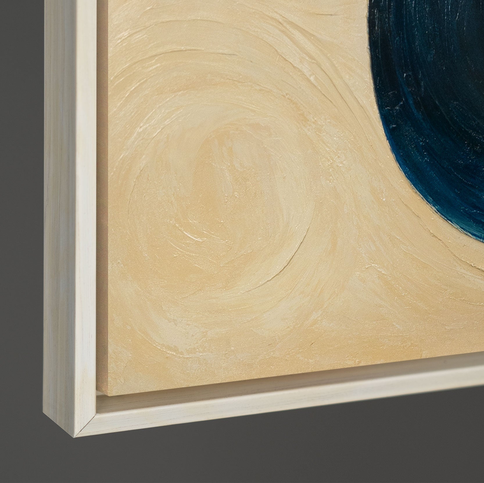 „Schnitt durch den Horizont“ ist ein spannungsvolles, handgemaltes Acrylgemälde, das mit klaren geometrischen Formen und kraftvollen Farben fasziniert. Die Komposition aus einem tiefblauen Kreis und einem markanten gelben Dreieck erzeugt Dynamik und symbolisiert das Spiel von Balance und Kontrast.