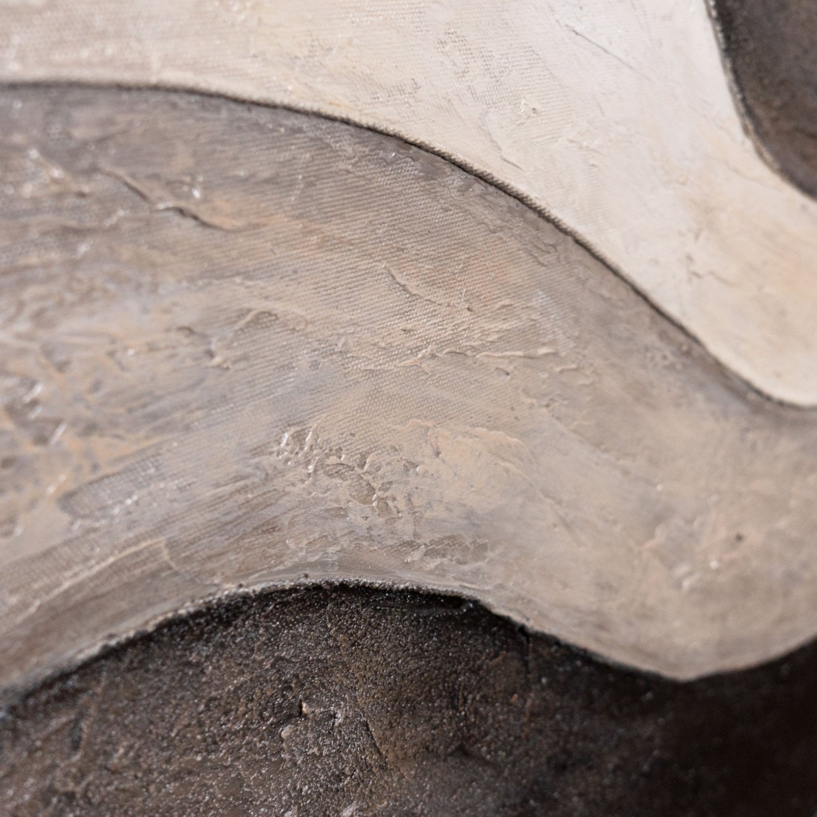 „Sandwellen“ ist ein handgemaltes Acrylbild auf Leinwand, das durch seine organischen Formen und die feine Relief-Struktur beeindruckt. In sanften Tönen von Beige, Creme, Grau und Schwarz entstehen geschwungene Linien, die an natürliche Dünenlandschaften erinnern. Jeder Pinselstrich bringt Tiefe und Bewegung in die Komposition, wodurch ein harmonisches Spiel aus Licht und Schatten entsteht.