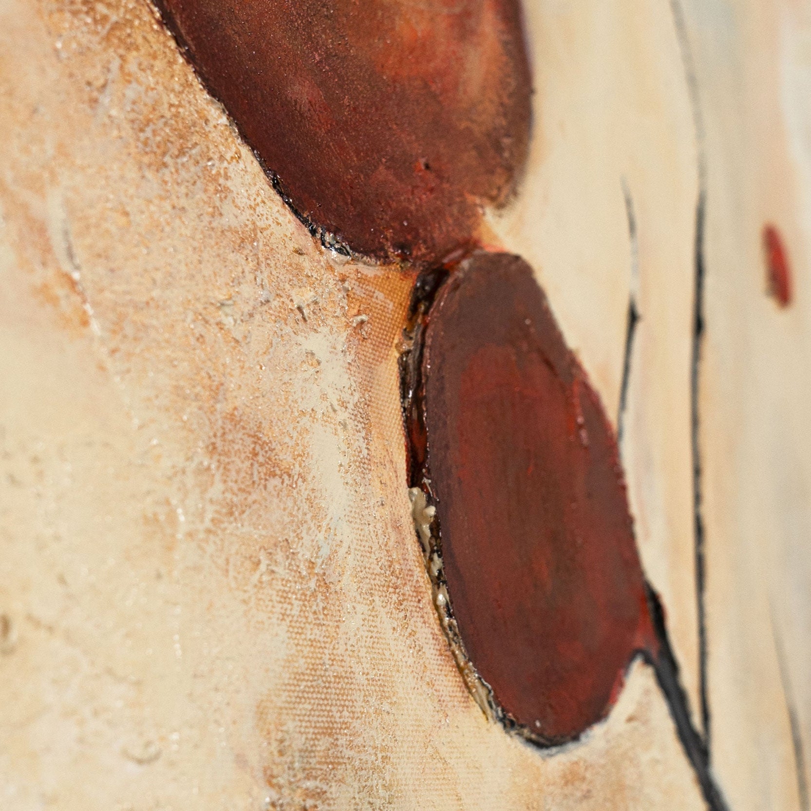 „Scharlachrote Sternbilder“ ist ein handgemaltes Acrylgemälde auf Leinwand, das durch seine kräftigen roten Kugeln und feinen Linien an leuchtende Sternbilder erinnert. Warme Beigetöne, sanfte Blauschleier und intensive Rotakzente verschmelzen zu einer faszinierenden Komposition, die Ruhe und Energie zugleich ausstrahlt. Die strukturierte Oberfläche verstärkt die Tiefe und macht jedes Detail greifbar.