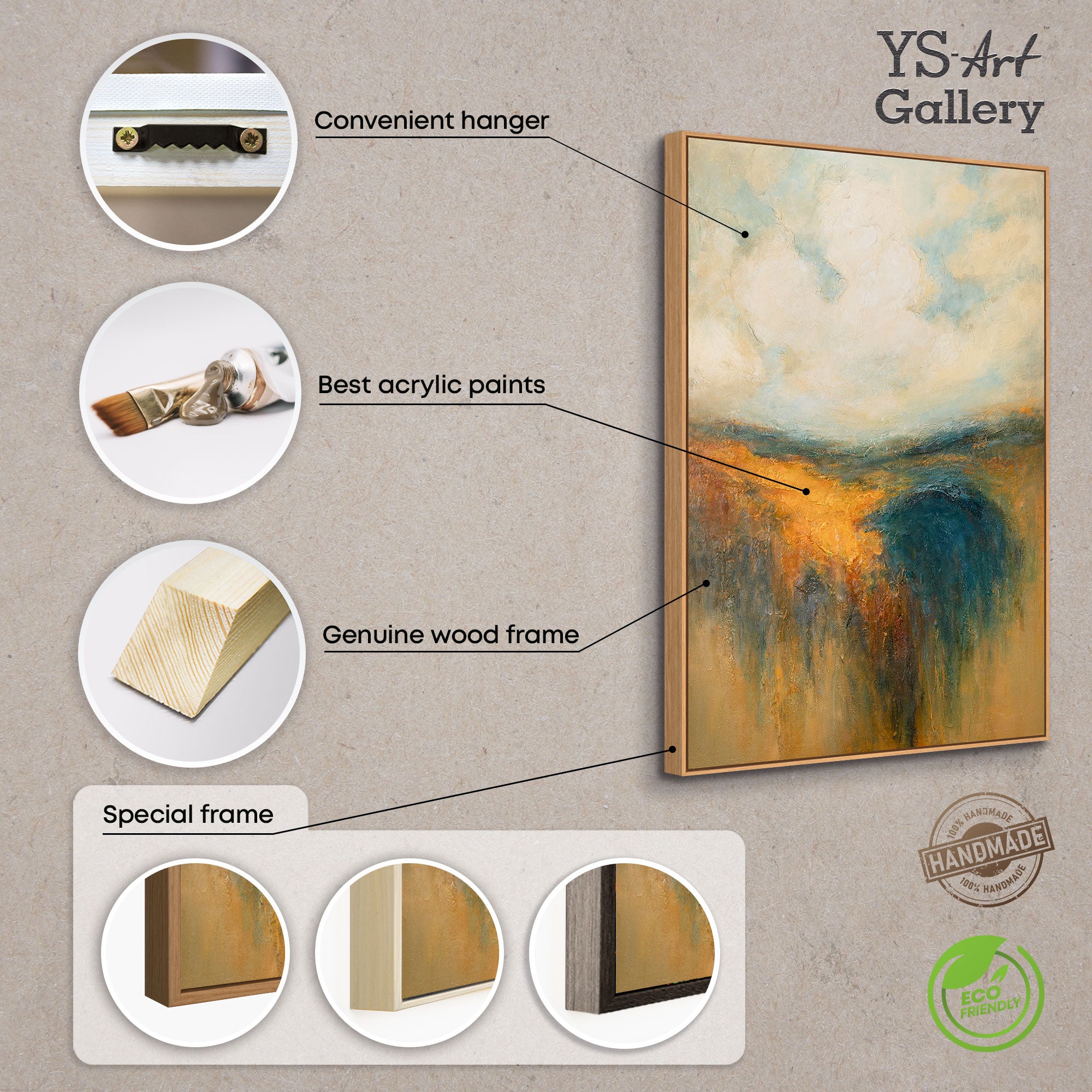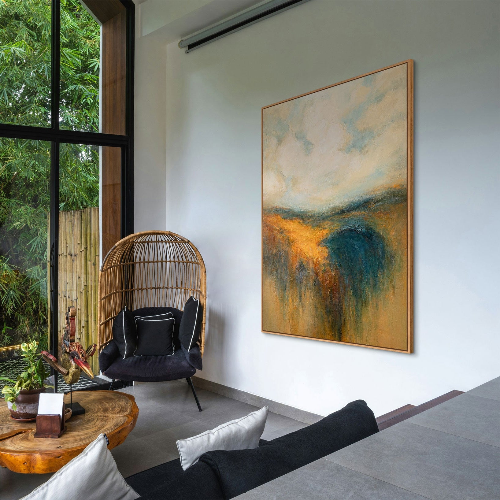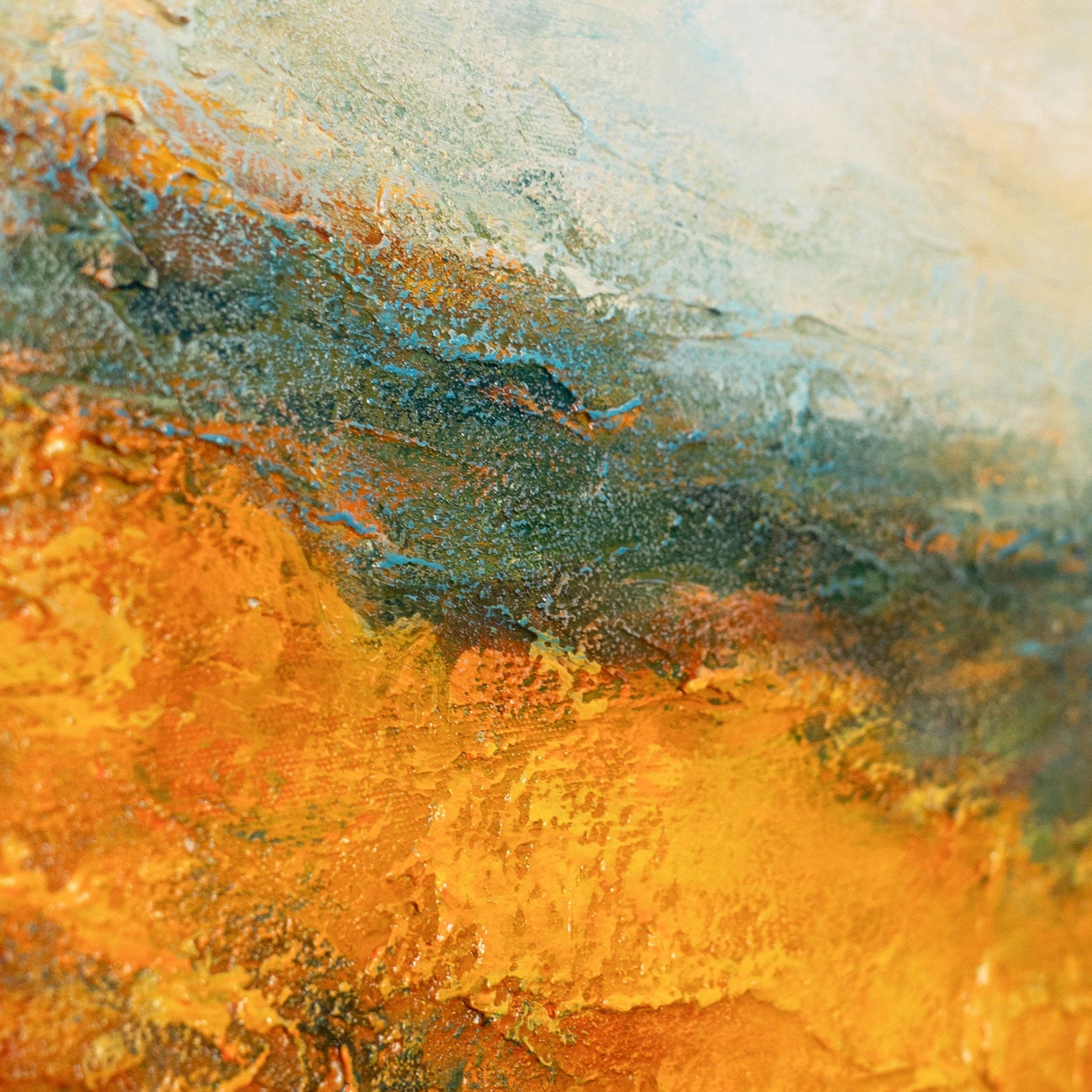 „Goldener Weite“ verbindet Tiefe, Struktur und leuchtende Farbigkeit zu einem einzigartigen Kunstwerk, das jedem Raum Eleganz und eine besondere Atmosphäre schenkt.