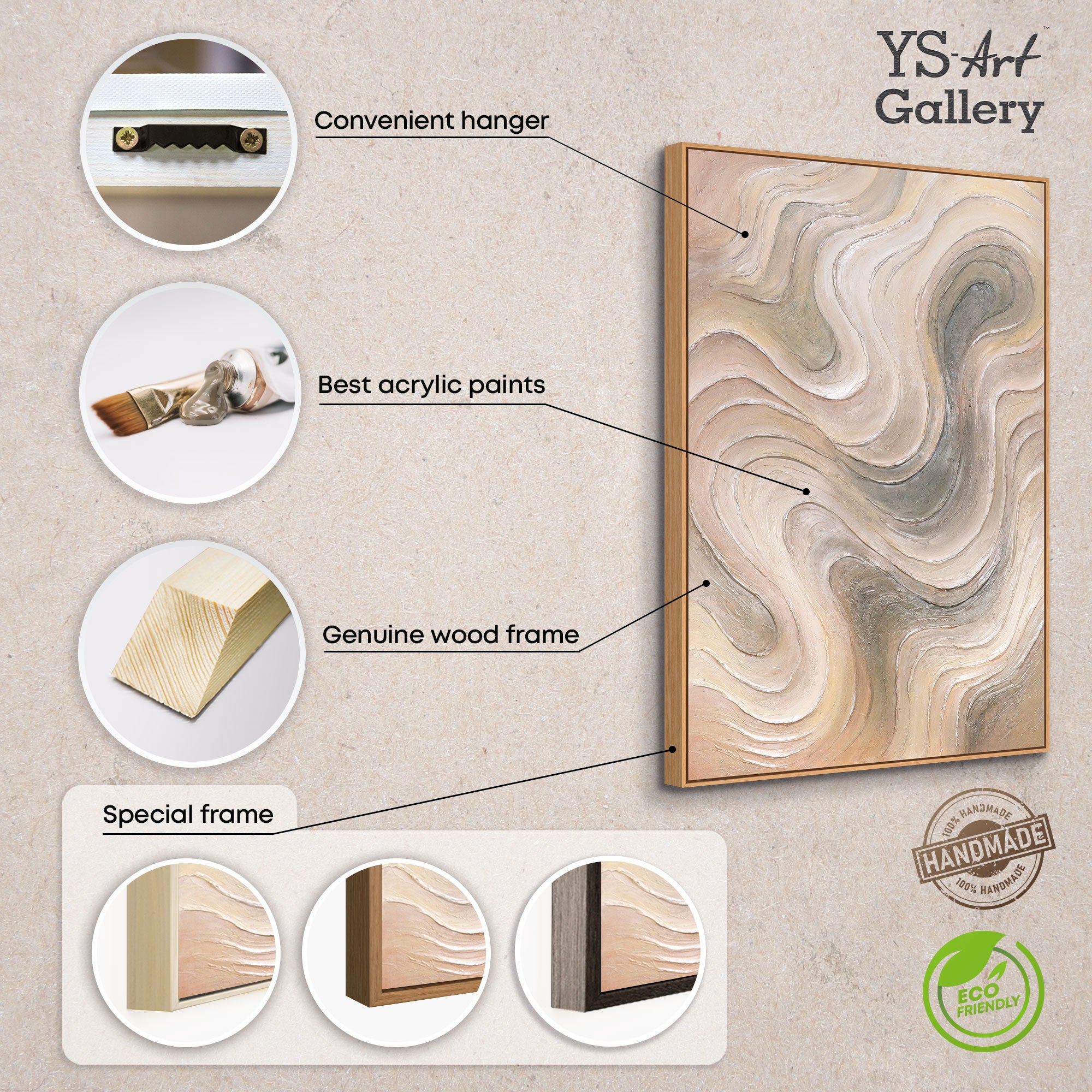 „Sanfte Strömung“ ist ein handgemaltes Acrylgemälde, das durch seine weichen, geschwungenen Linien und seine ruhige Farbpalette aus Beige-, Grau- und Cremetönen besticht. Die strukturierte Oberfläche erzeugt ein lebendiges Spiel von Licht und Schatten, das Bewegung und Harmonie zugleich ausstrahlt.