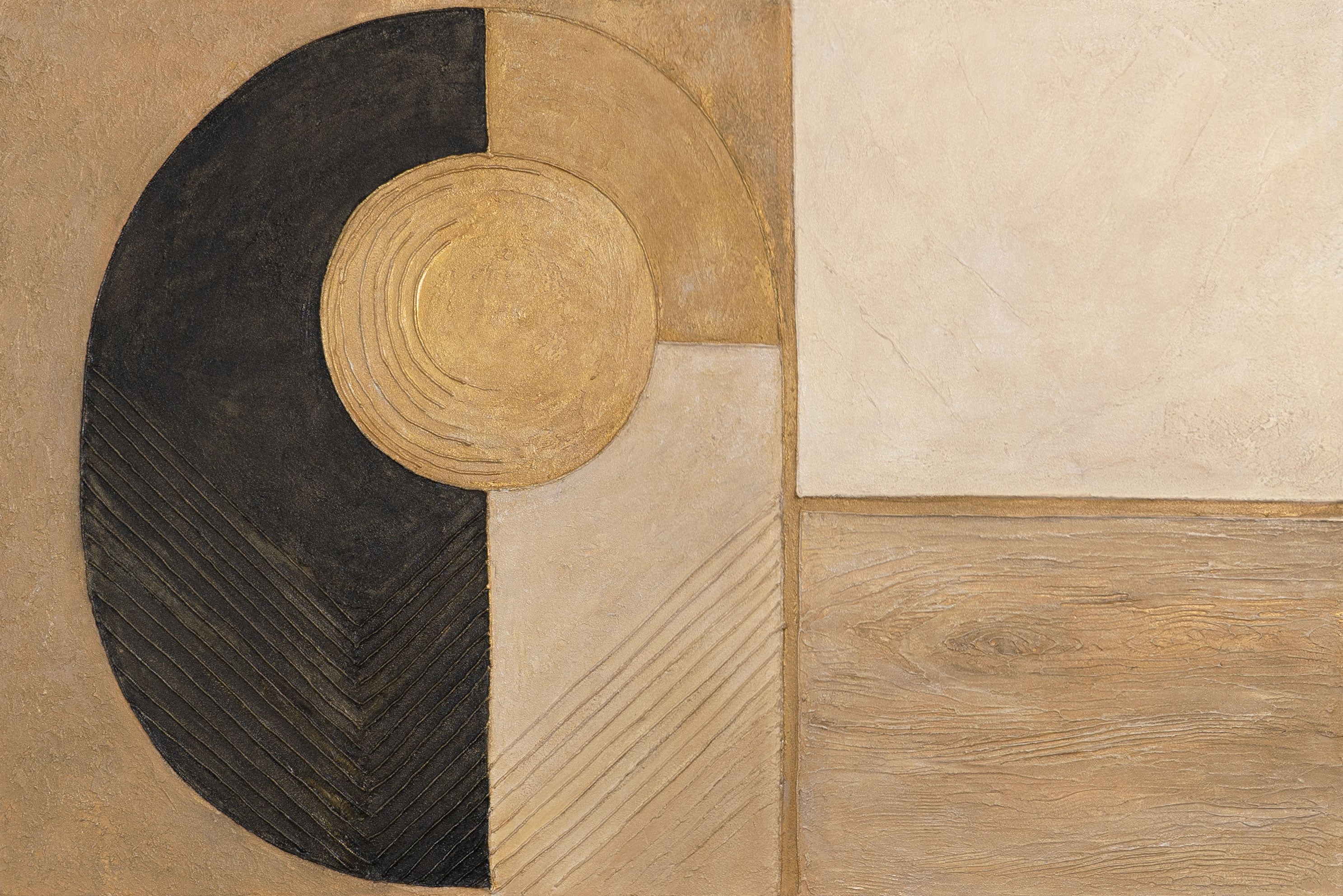 Diese abstrakte Wandkunst ist ideal für stilvolle Interieurs, ob Wohnzimmer, Büro oder Galerie. Das handgemalte Acrylbild mit Struktur verbindet Form, Materialität und Eleganz zu einer harmonischen Komposition. Lieferung ist selbstverständlich kostenlos.