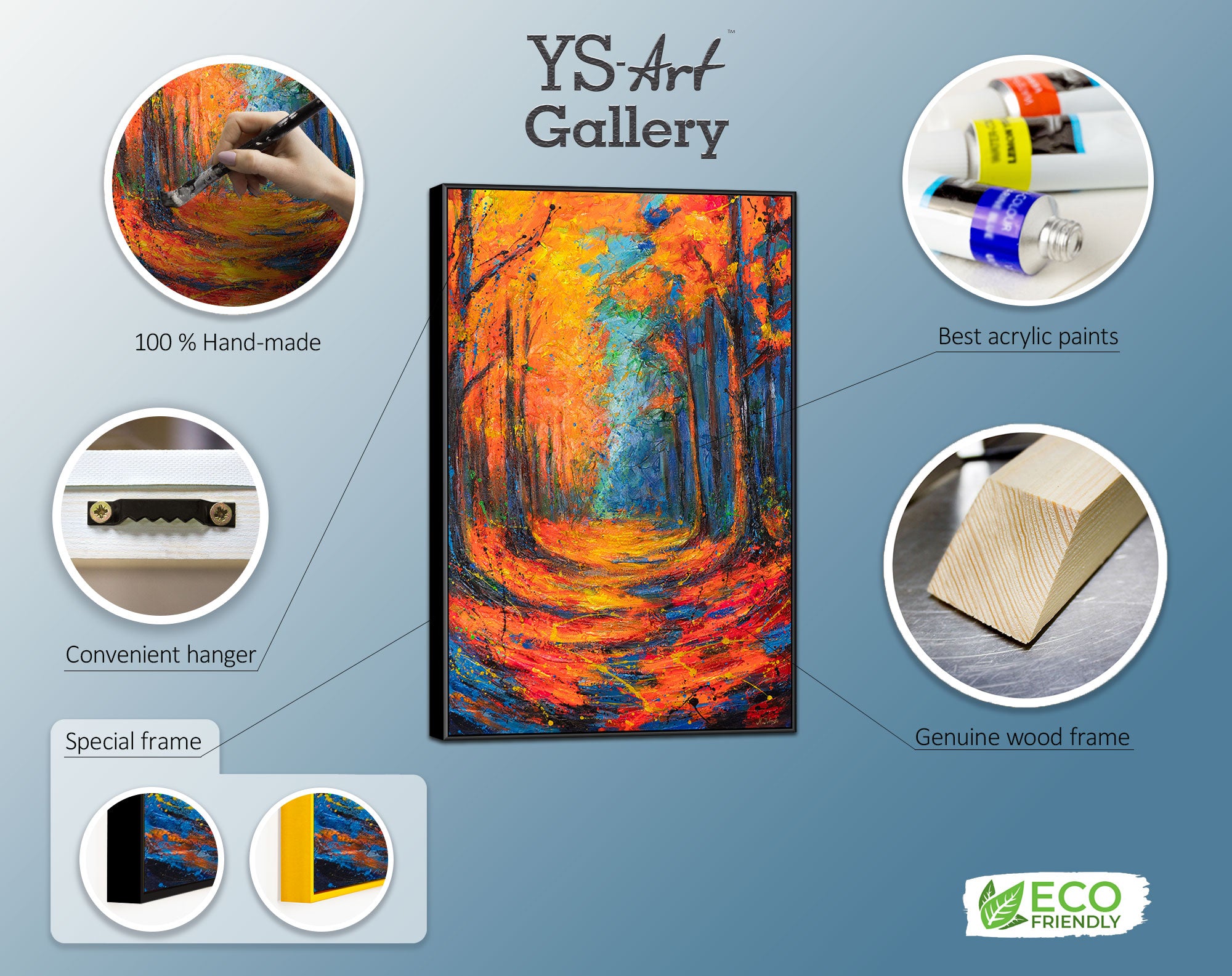 • Handgeschilderd Leinwandbeeld "Gloeiende Paden in Herfstbos" – Structuur & Kleurrijk