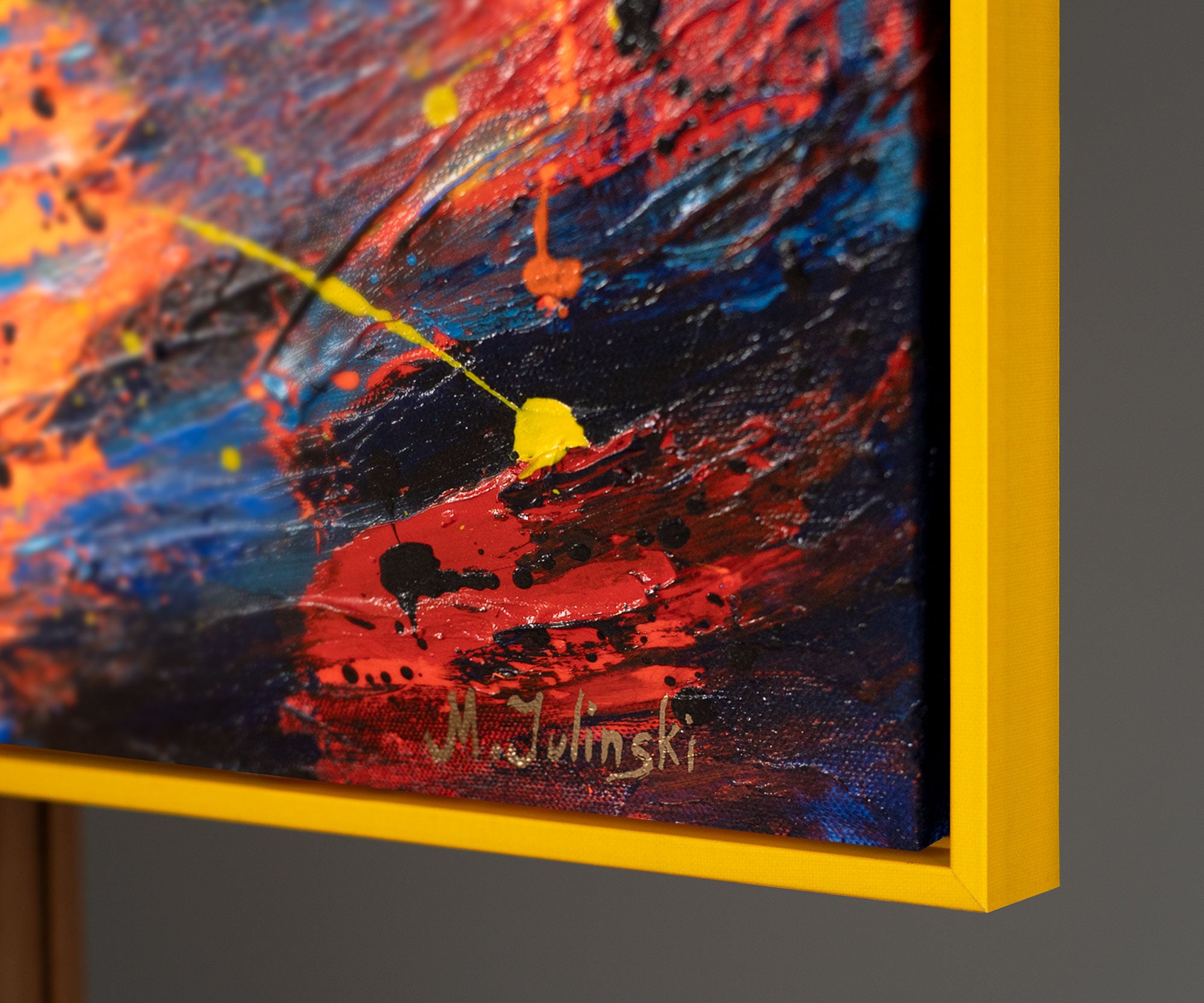 Dit handgeschilderde acrylcanvas is ideaal voor ruimtes die levendigheid en warmte willen uitstralen. De plastische penseelstreken en levendige kleuren maken elk exemplaar tot een echte blikvanger.