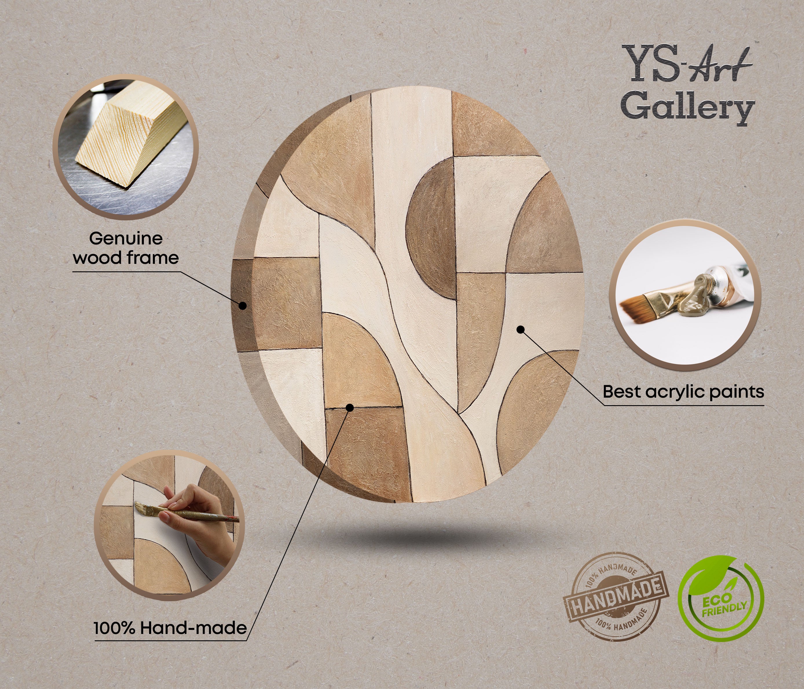 Runde Acrylbild „Ornamente der Zeit“ – Abstrakte Strukturkunst in Erdtönen