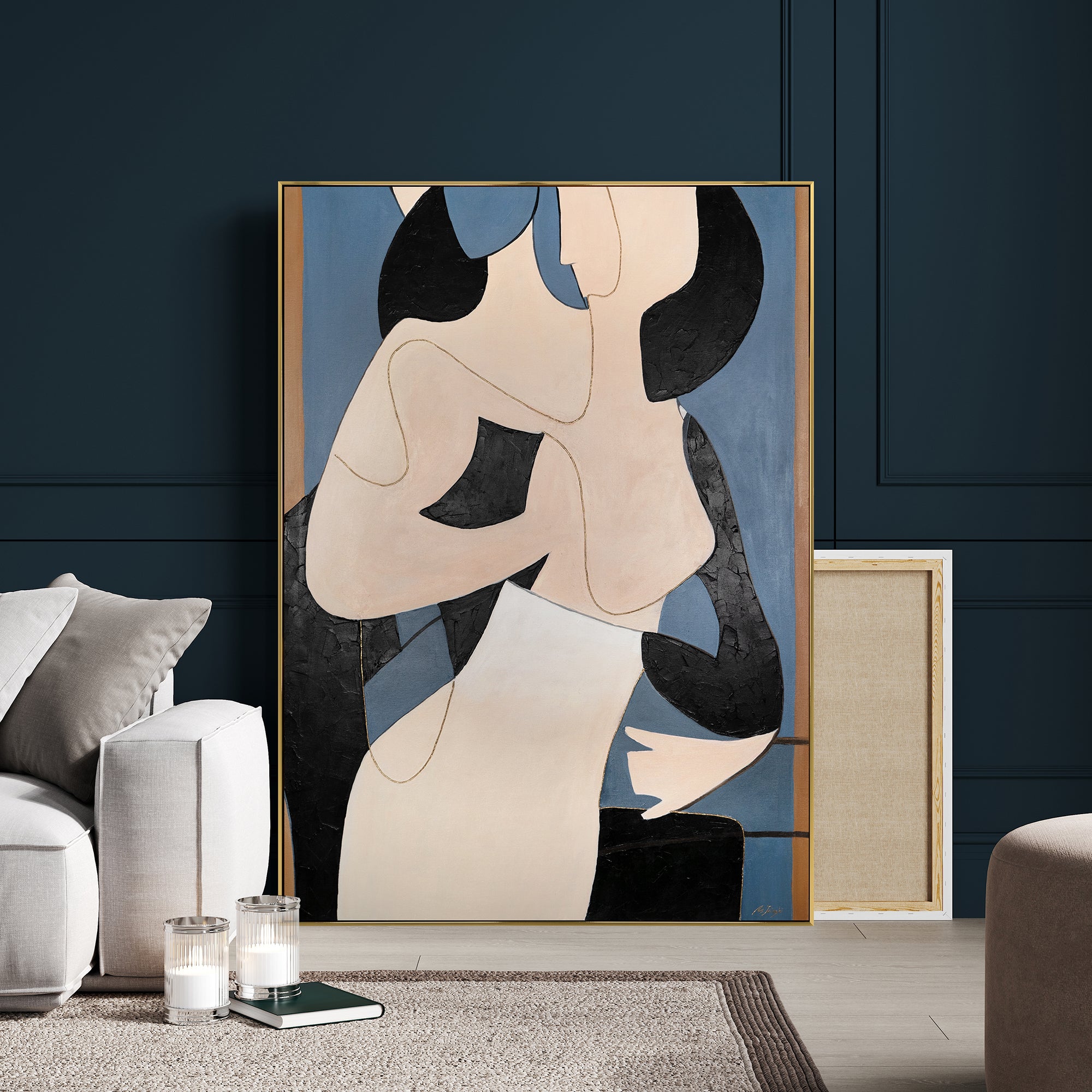 Ontdek de schoonheid van moderne kunst met onze handgeschilderde, abstracte, moderne schilderijen. Dit unieke werk is gemaakt door een getalenteerde kunstenaar en toont twee figuren in een betoverende abstracte stijl die uw interieur naar een nieuw designniveau zullen tillen. Het schilderij heeft een afmeting van 60x90 cm en is geschilderd op hoogwaardig canvas, wat een lange levensduur garandeert.
