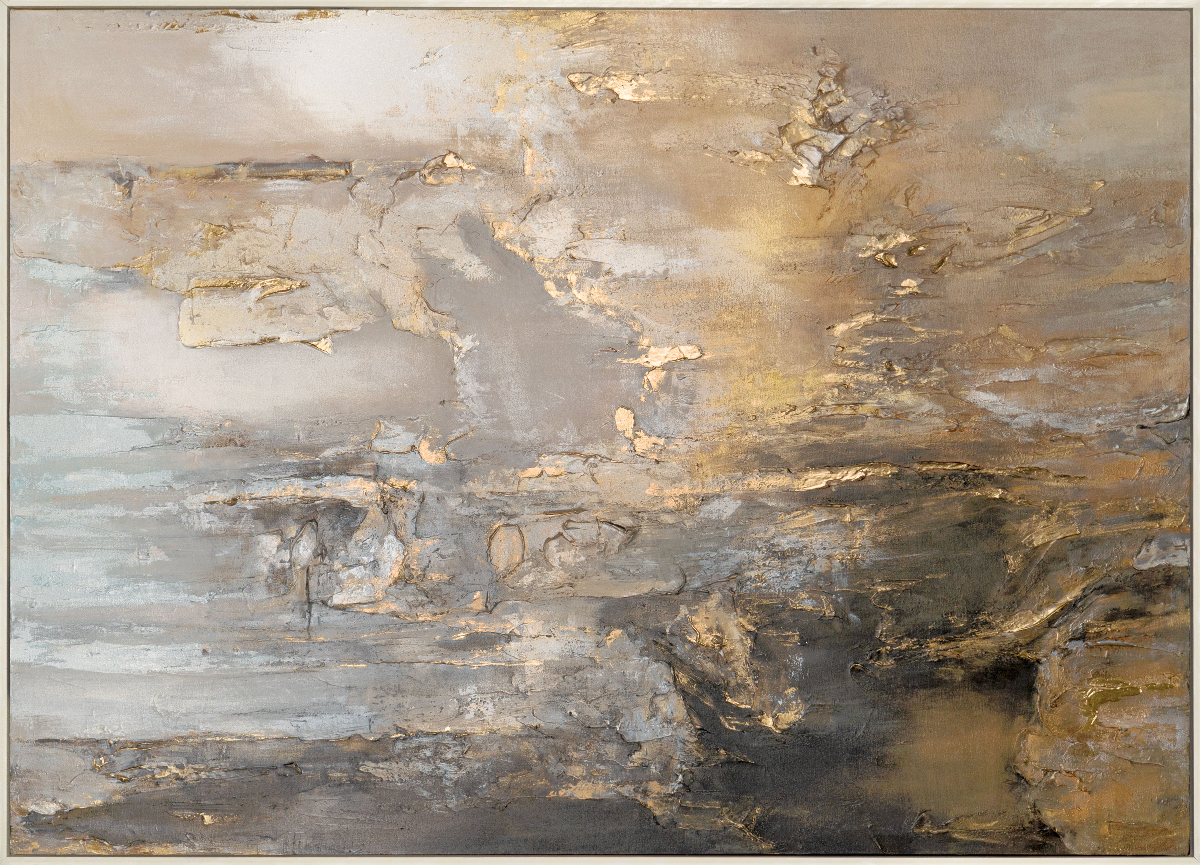 Ontdek de fascinerende wereld van abstracte kunst met het schilderij "Golden Harmony". Dit handgeschilderde kunstwerk op canvas brengt een vleugje elegantie en moderniteit in uw woonkamer. De harmonieuze combinatie van gouden en beige tinten creëert een rustgevende en stijlvolle sfeer.