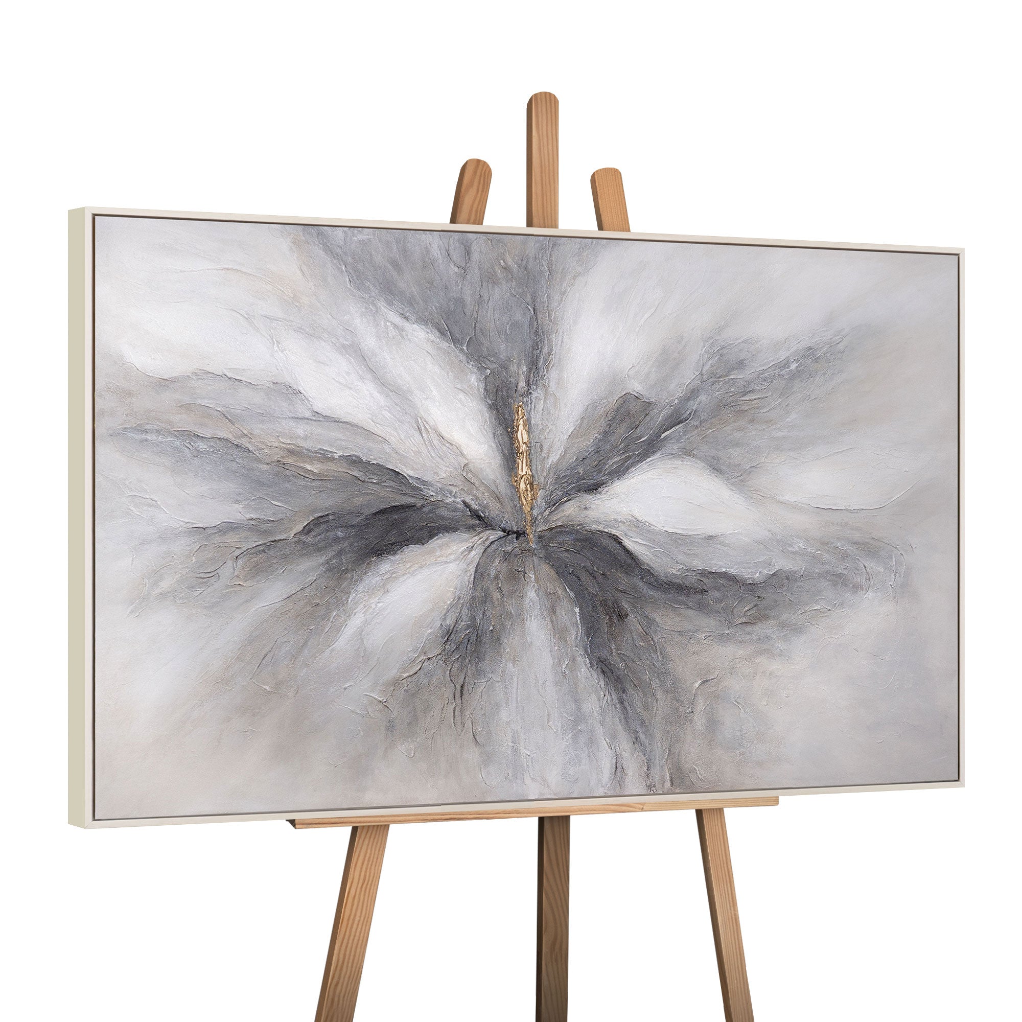 „Gouden Moment“ is een elegant, handgeschilderd acrylschilderij dat zich onderscheidt door de tijdloze kleurencombinatie van grijs, wit en zachte beige tinten. In het midden van het schilderij loopt een gouden accent dat de compositie met edele warmte doordrenkt en de reliëfstructuur doet oplichten. De plastische penseelstreken geven het werk diepte en dynamiek, waardoor het een harmonieuze uitstraling vol elegantie krijgt.