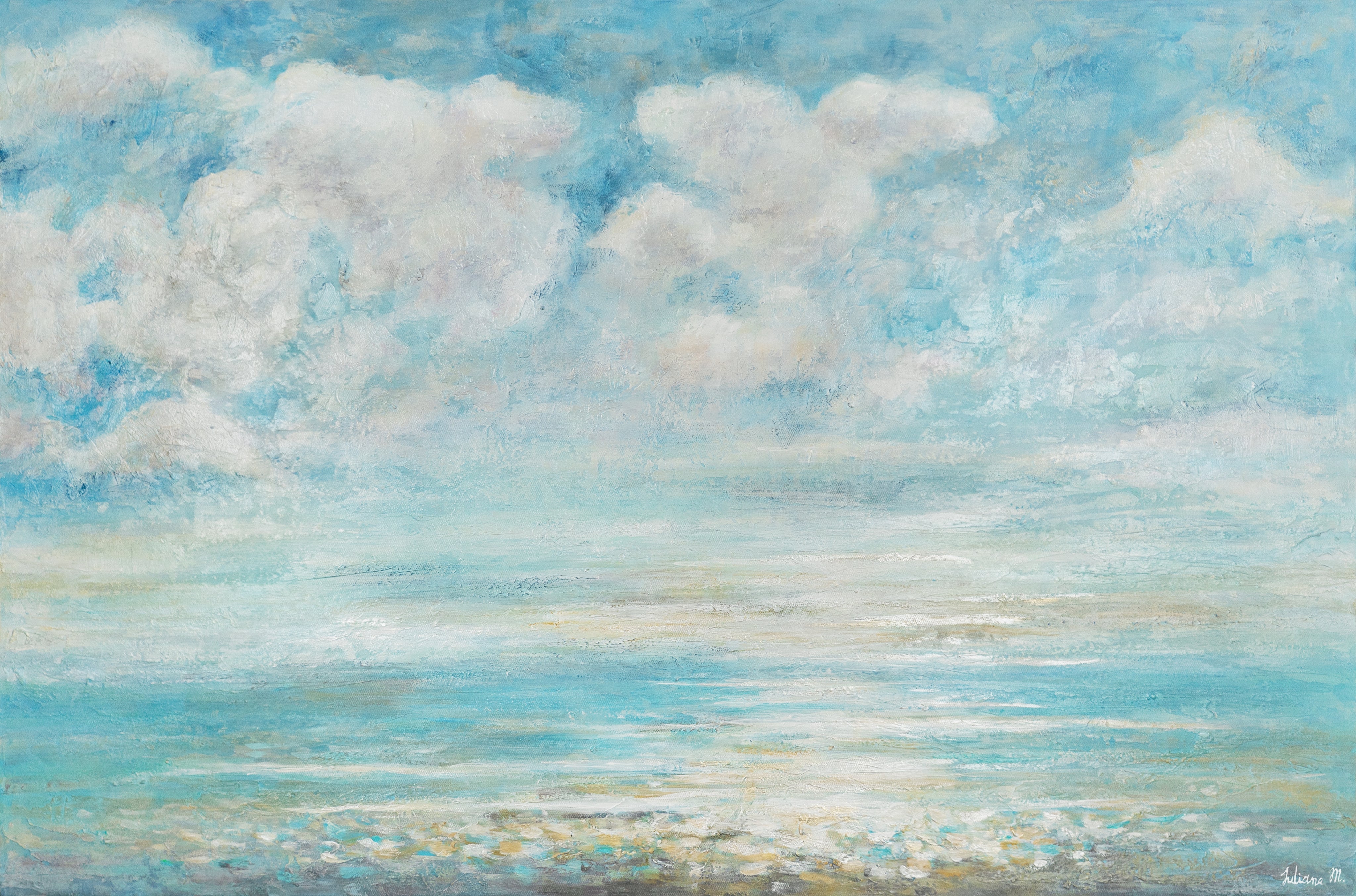 Dit handgeschilderde canvas schilderij vangt het gevoel van een zomerse verfrissing: Met levendige blauwtinten, turquoise en accenten in wit en koraal ontstaat een levendig zee- en strandlandschap. Het gestructureerde acryloppervlak geeft het schilderij een dynamisch diepte-effect en benadrukt de zomerse frisse golven. Ideaal als sfeervolle blikvanger in woonkamers, slaapkamers of vakantiehuizen – voor een verfrissende sfeer het hele jaar door.