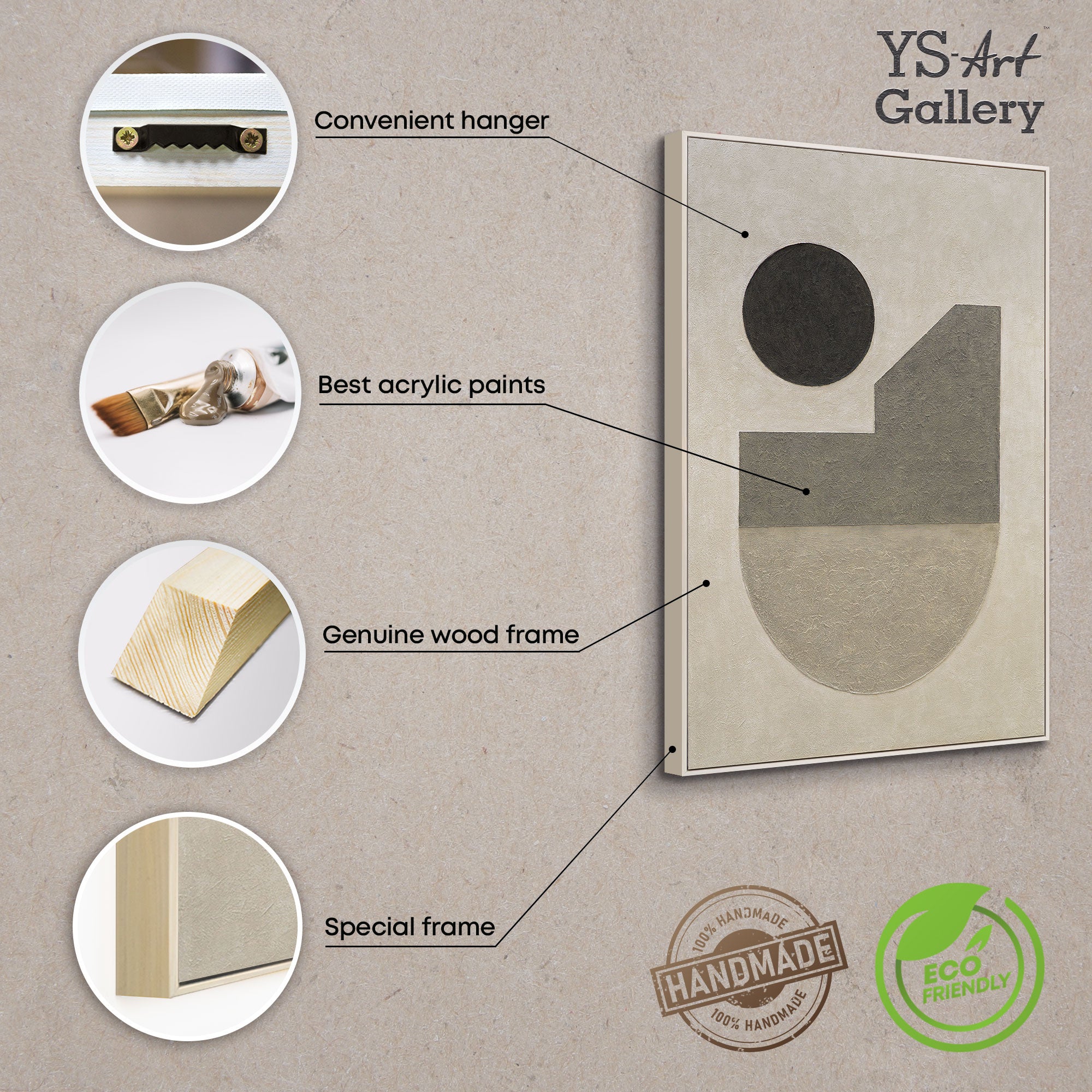 Dit handgeschilderde acrylschilderij op canvas combineert heldere vormen met een zacht getextureerd oppervlak. Perfect voor moderne, Scandinavische of minimalistische interieurs. 100% handgeschilderd in Duitsland, vervaardigd van hoogwaardige materialen, zorgvuldig verpakt en gratis verzonden – een kunstwerk dat diepte vindt in zijn eenvoud.