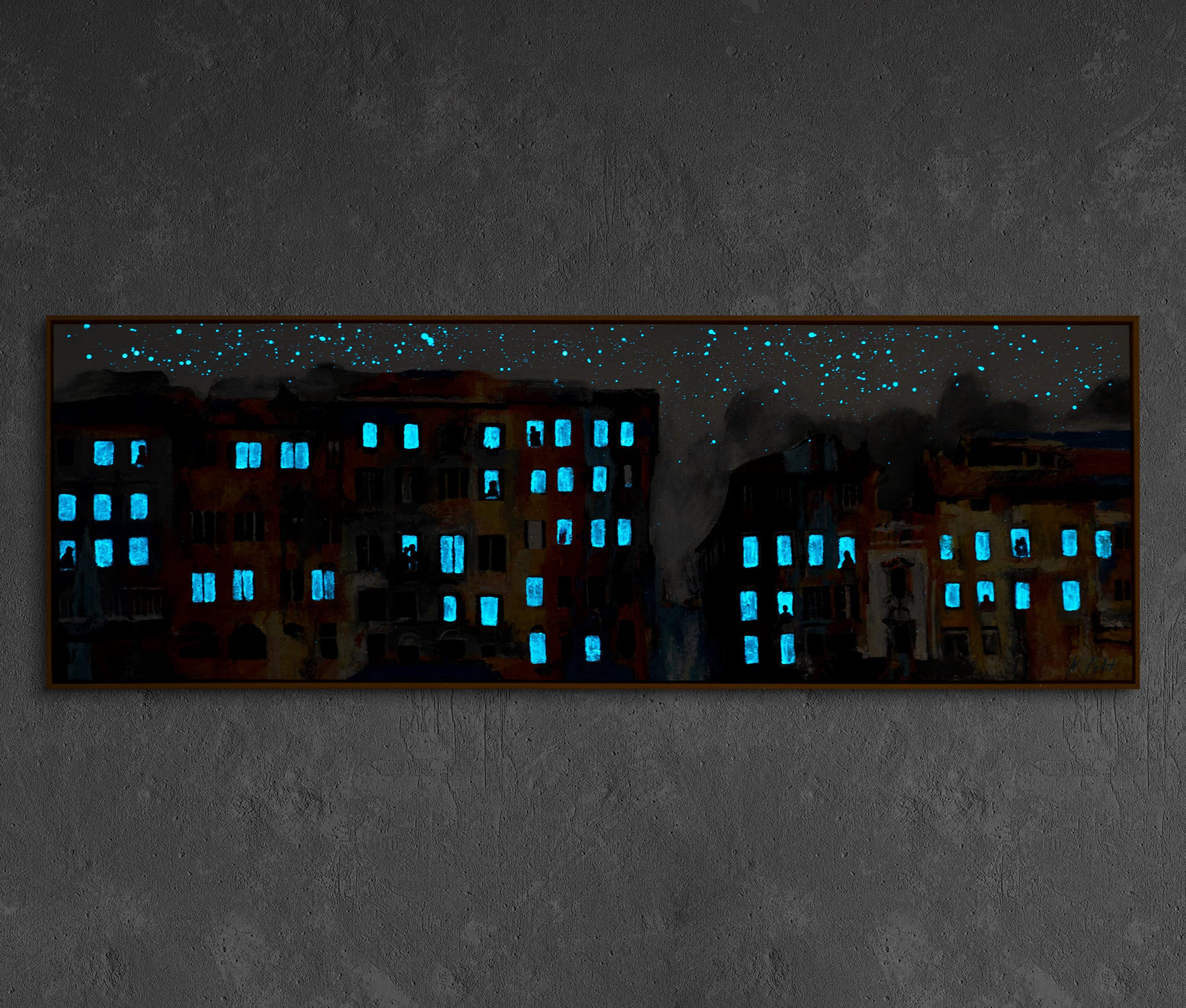 - Dit is een geheel nieuw voorstel voor uw interieur. Wij hebben lang geëxperimenteerd om iets te creëren dat niet alleen overdag, maar ook 's avonds perfect bij uw interieur past. Ons schilderij ziet er precies zo uit als u in onze video ziet.
