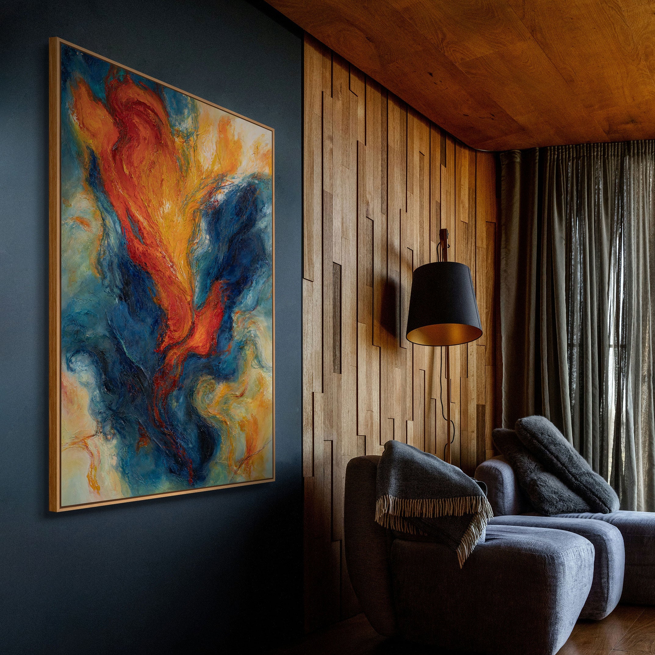 Abstrakte Kunst auf Leinwand „Verschmelzung der Energien“ – Farbstarkes Gemälde mit Rahmen