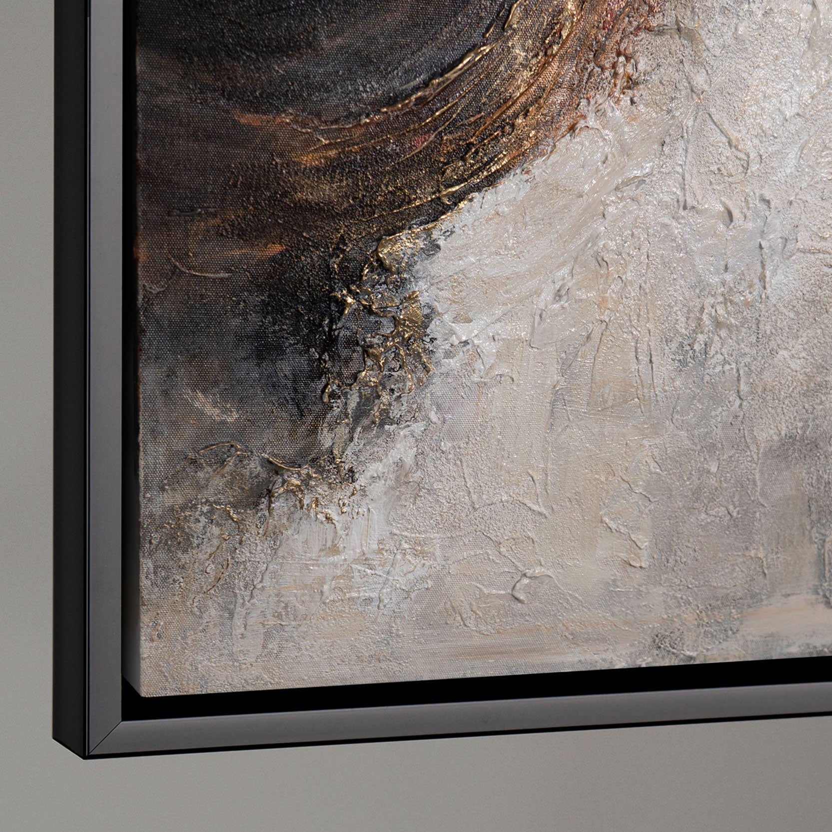 „Element in Bewegung“ ist ein handgemaltes Acrylgemälde, das mit seiner dynamischen Formensprache und den kontrastreichen Farbverläufen fasziniert. Dunkle Akzente in Schwarz verschmelzen mit warmen Braun- und Beigetönen, während die strukturierte Oberfläche Tiefe und Lebendigkeit erzeugt. Die reliefartige Gestaltung bringt Bewegung ins Bild und macht es zu einem Blickfang moderner Wandkunst.
