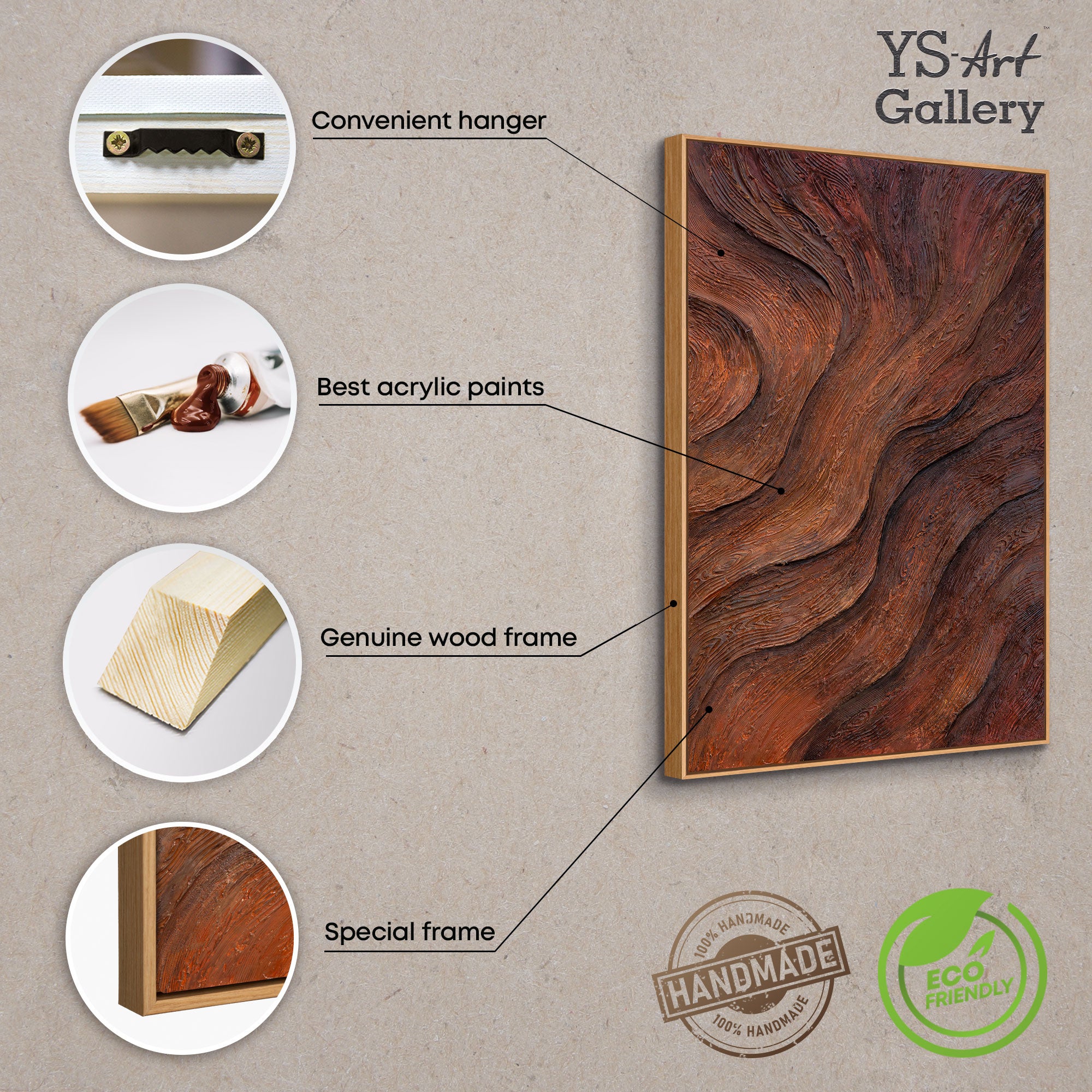 Diese handgemalte Acrylmalerei mit Struktur fügt sich harmonisch in moderne, rustikale oder minimalistische Räume ein. Ihre warme, organische Farbwelt in Holz- und Erdtönen schafft Geborgenheit und Authentizität. Made in Germany, mit Liebe zum Detail gefertigt, sicher verpackt und mit kostenlosem Versand – Kunst, die Wurzeln schlägt.