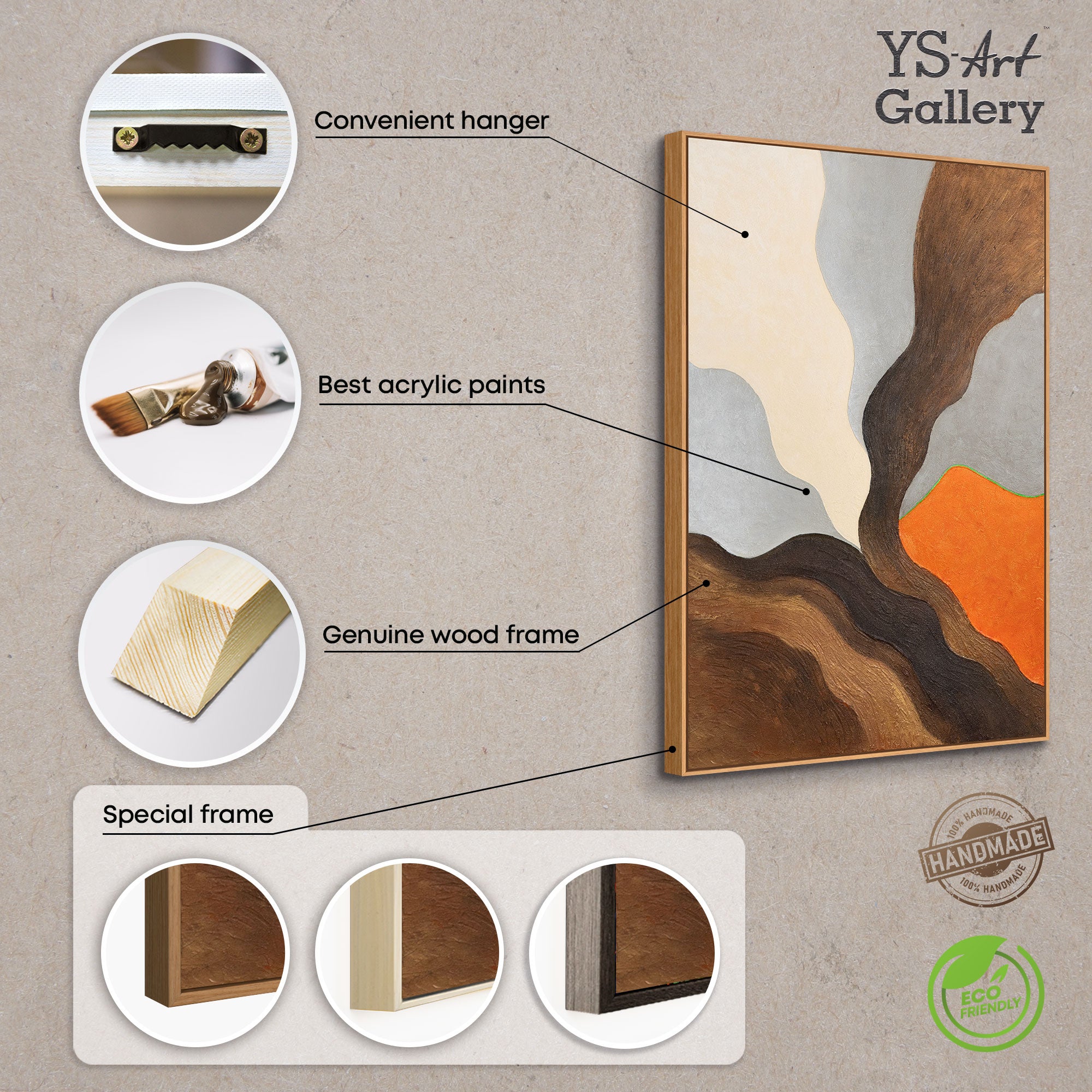 Handgemaltes Acrylbild mit Rahmen „Abendliche Hügel“ – Moderne Wandkunst in Erdtönen