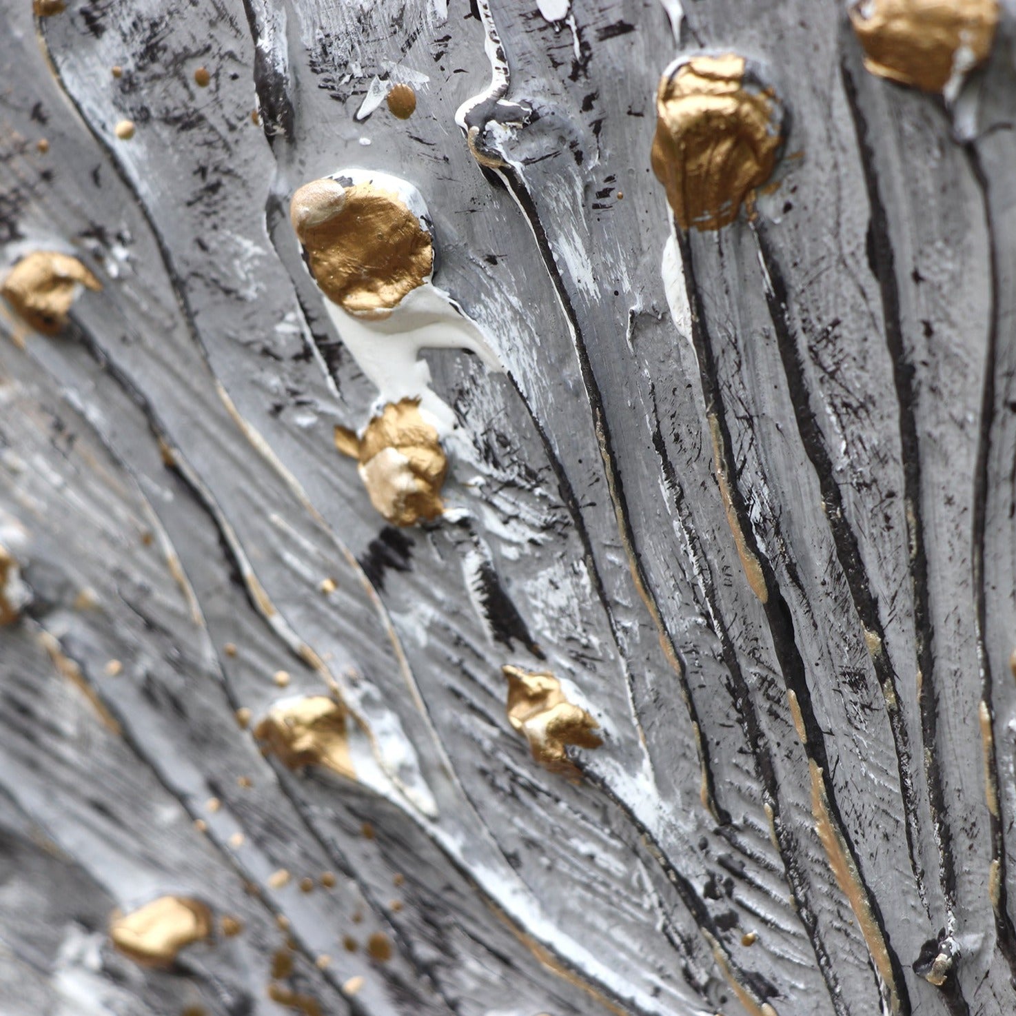 Breng de schoonheid van de natuur in uw huis met dit handgeschilderde bloemen schilderij. De elegante grijstinten en gouden accenten creëren een moderne en luxe sfeer in uw ruimte. Dit kunstwerk is volledig met de hand gemaakt, wat elk schilderij tot een uniek meesterwerk maakt. Profiteer van gratis levering.