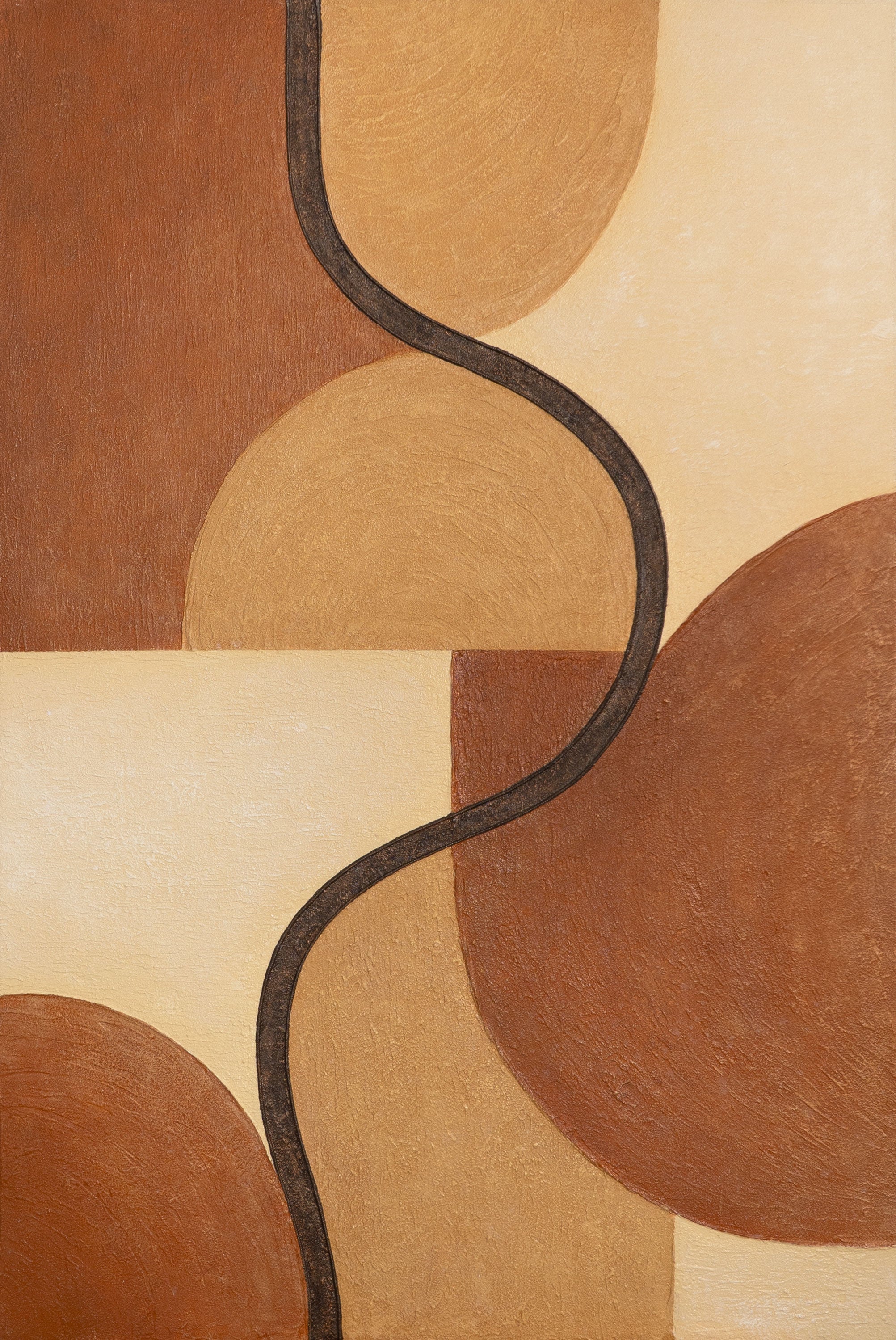 • Handgeschilderd acryl schilderij "Verstrengeling van vormen" – Wanddecoratie in aardetinten