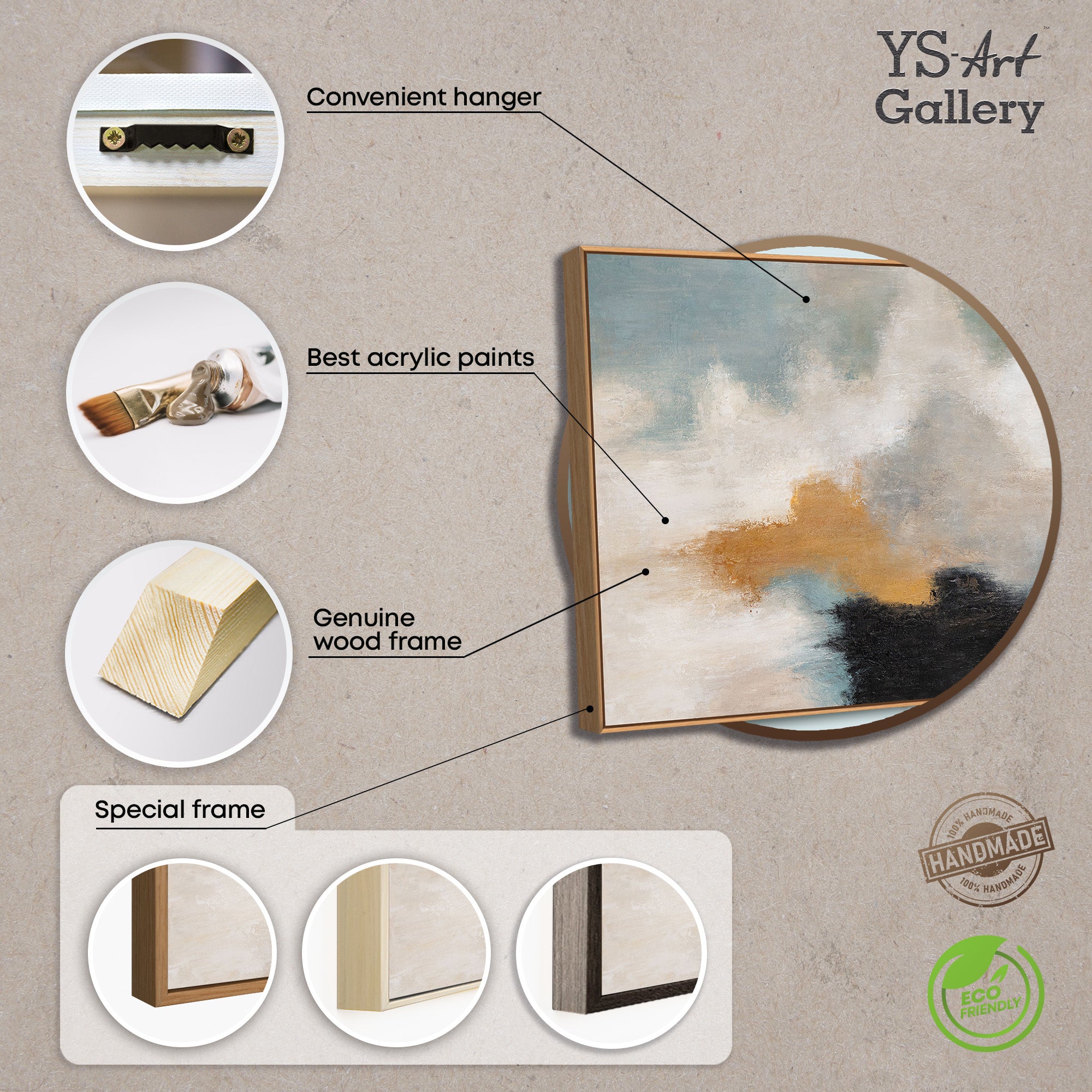 • Handgeschilderd: Ja, elk acrylschilderij is uniek