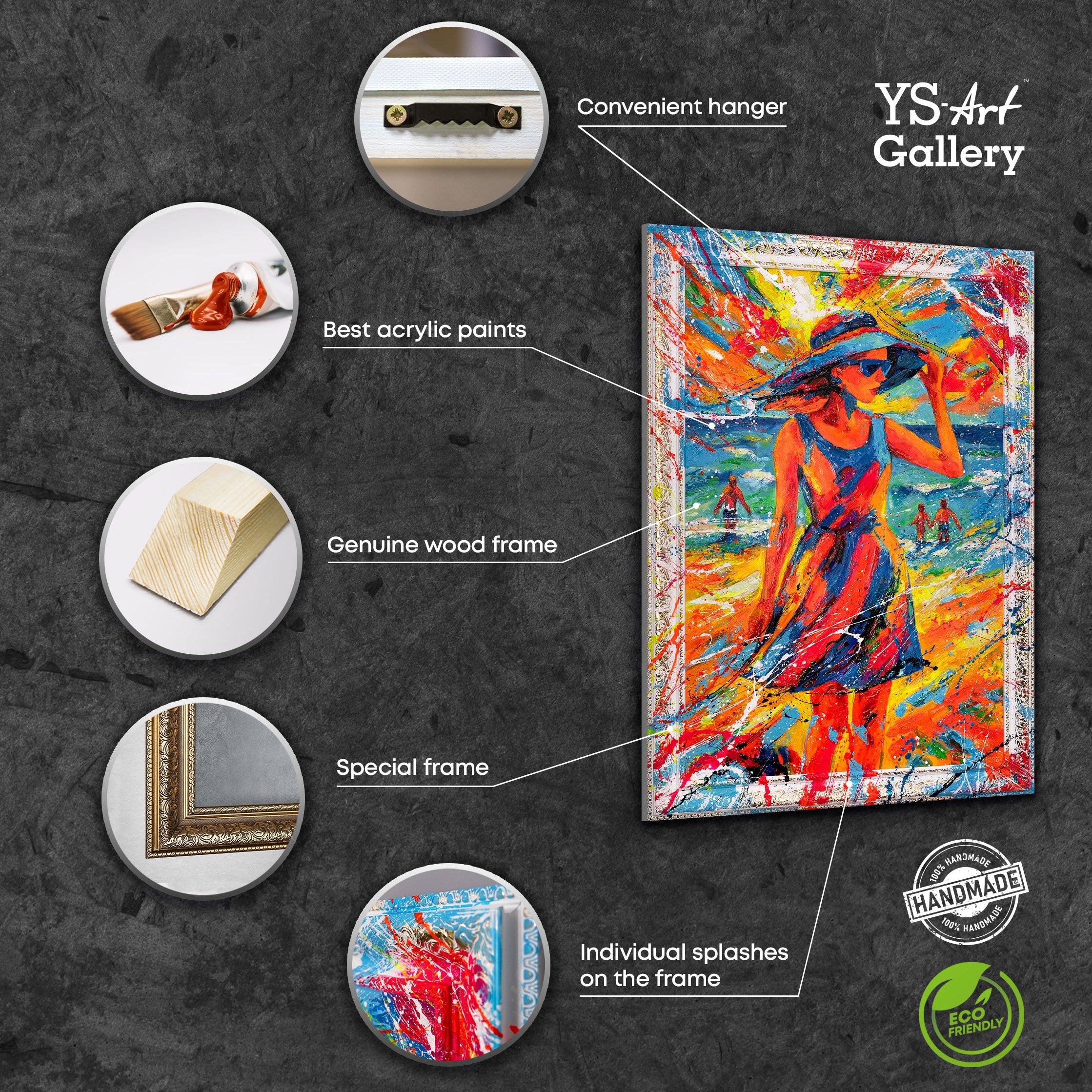 Elk Schilderij wordt geleverd in de originele verpakking met een echtheidscertificaat en de handtekening van de kunstenaar, zodat u een authentiek en uniek kunstwerk ontvangt.