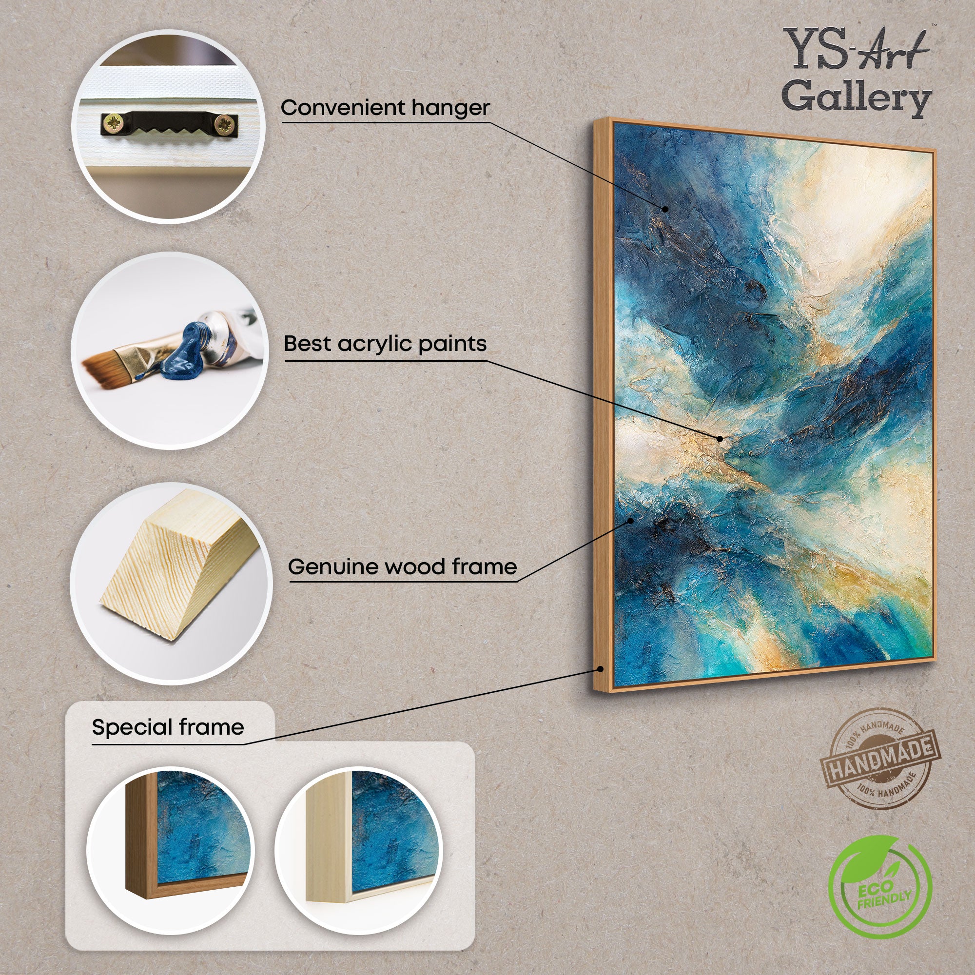 Dit abstracte schilderij past perfect bij moderne, elegante en minimalistische woonstijlen. Het brengt rust, frisheid en maritieme elegantie in de woonkamer, slaapkamer of kantoor en geeft elke ruimte een exclusieve sfeer.