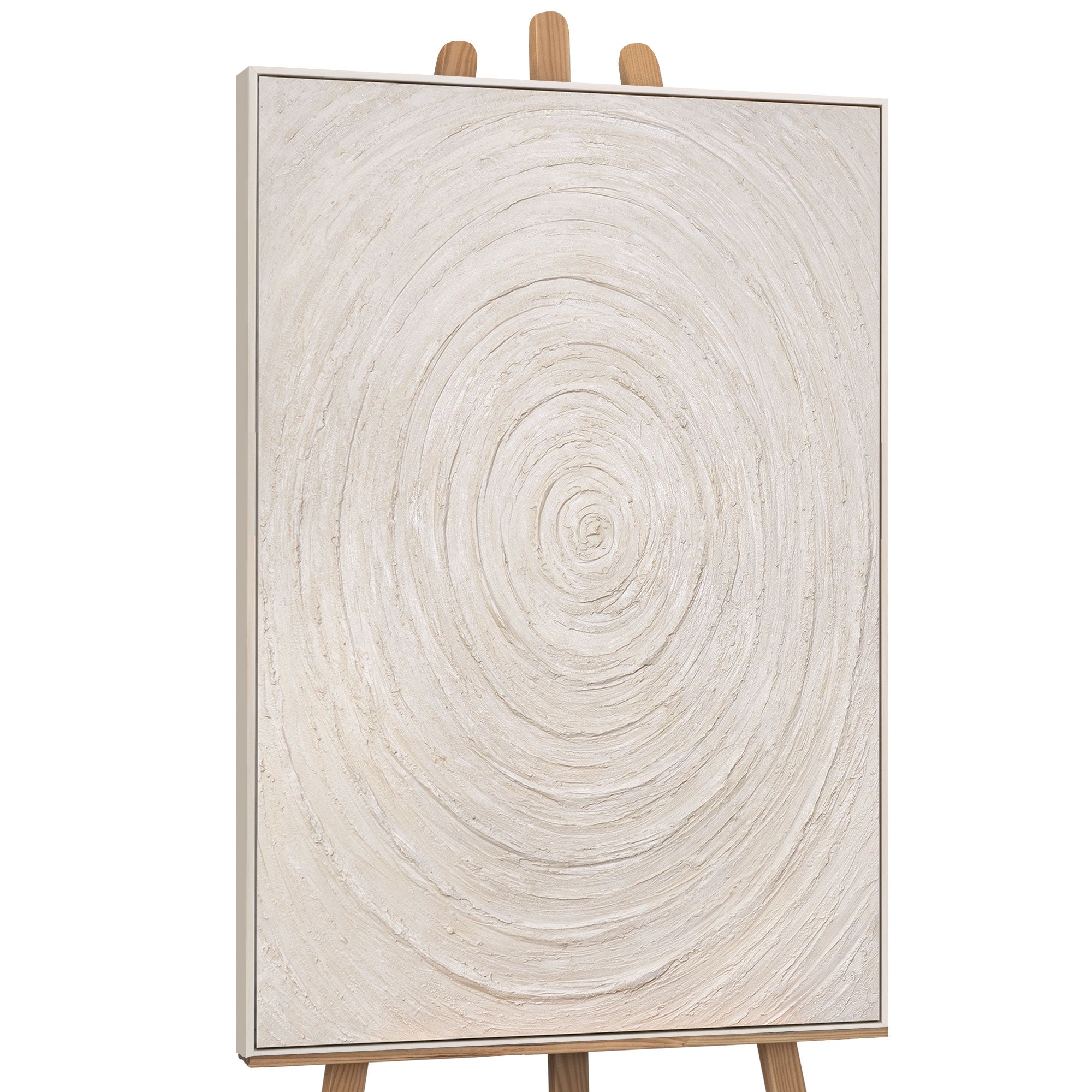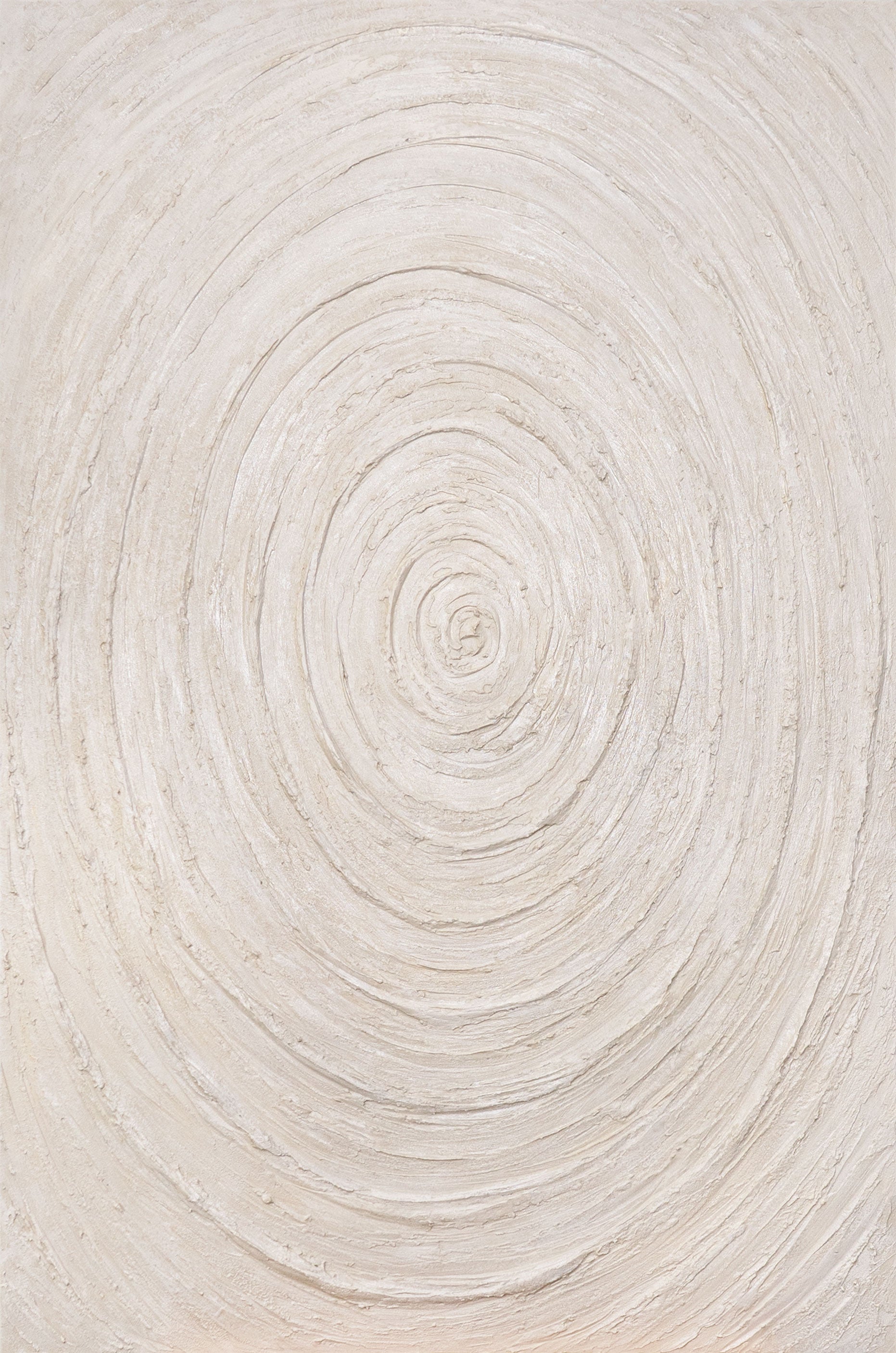 Breng harmonie en rust in uw huis met dit handgemaakte abstracte wandbeeld. De concentrische cirkels in zachte beige- en natuurtinten herinneren aan golven of jaarringen en geven het kunstwerk een bijzondere diepte en symboliek.