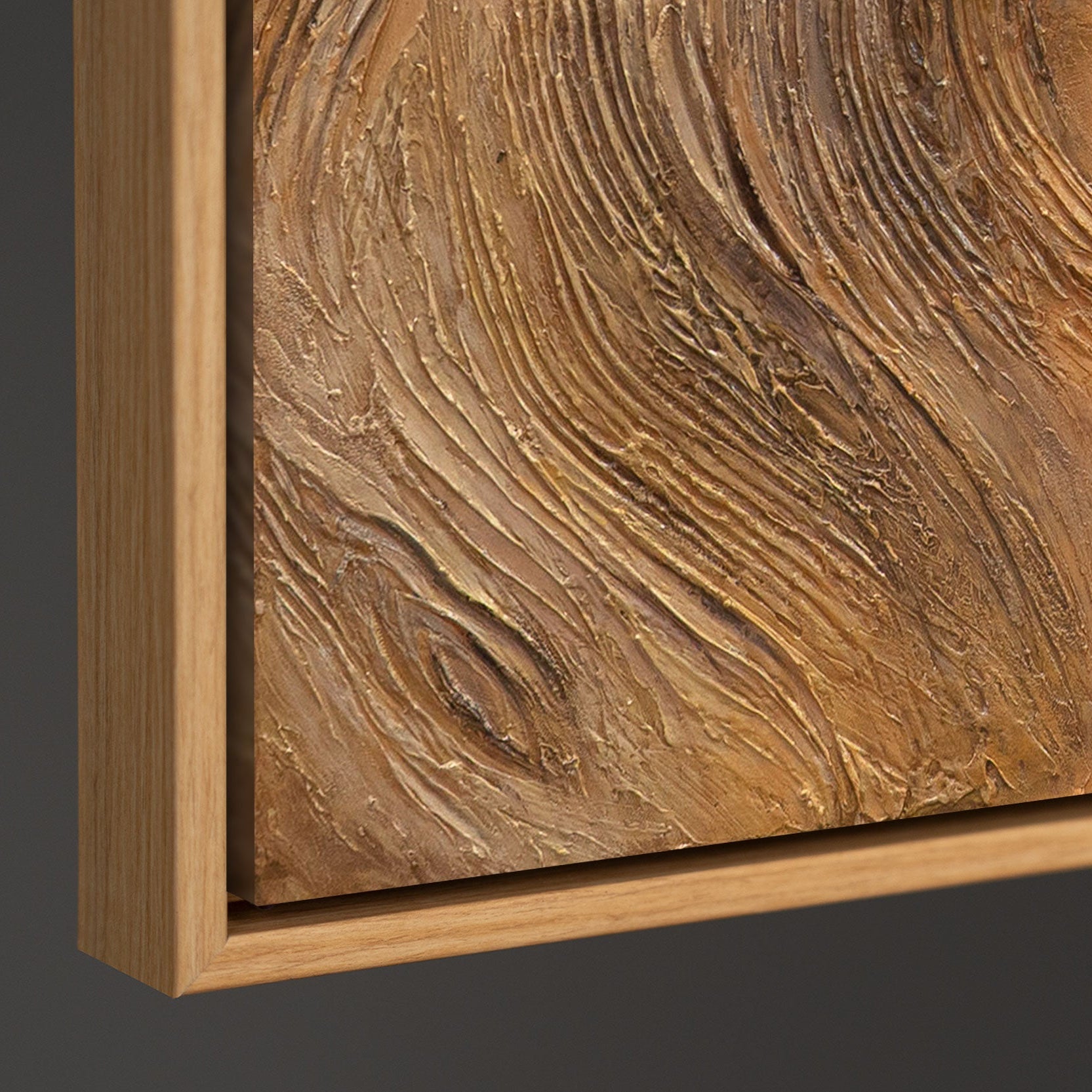 Dit schilderij combineert structuur, geometrie en materialiteit tot een rustige, moderne beeldtaal en is ideaal voor iedereen die heldere vormen en hoogwaardige, handgeschilderde kunst waardeert.