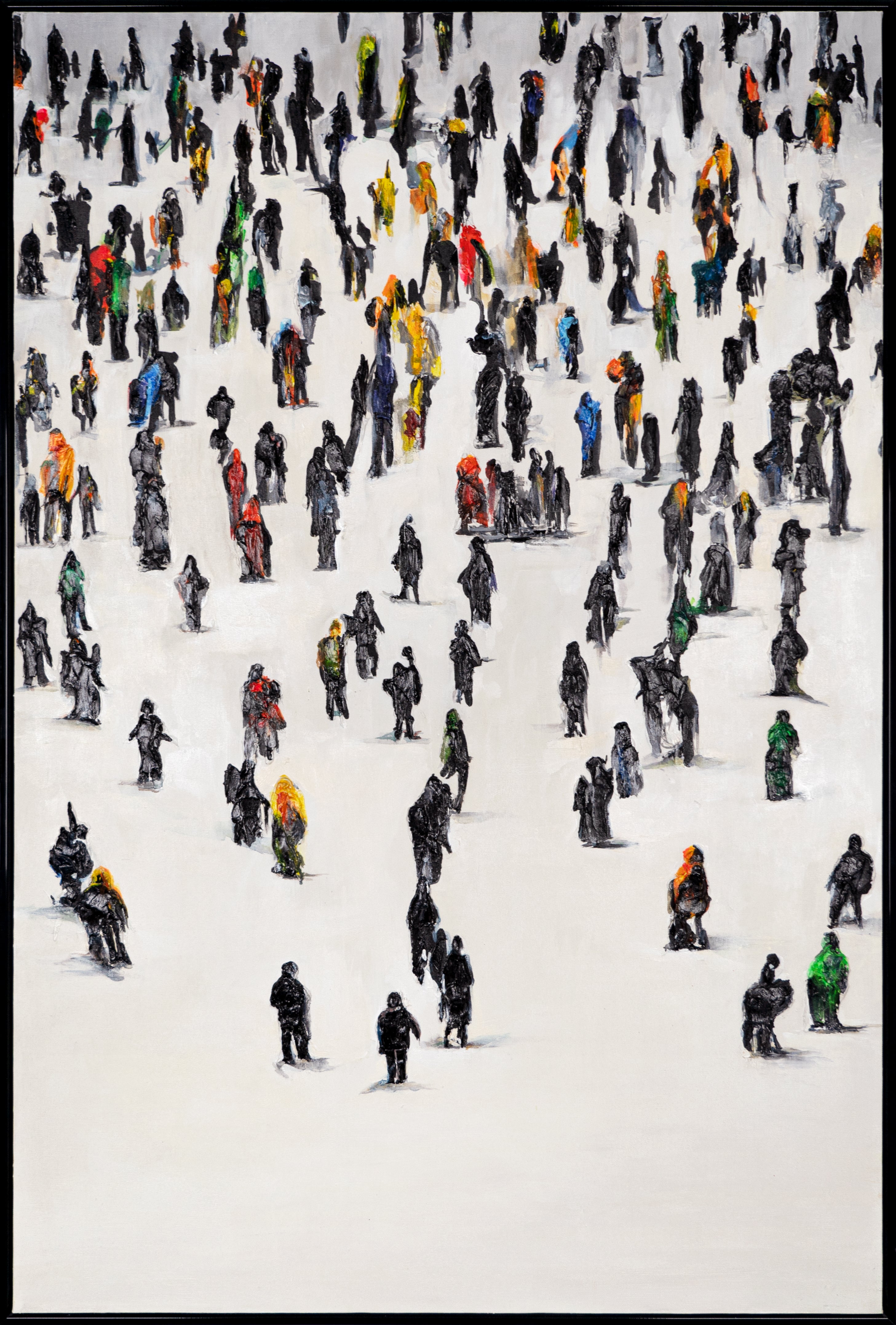 Verrijk uw huis of kantoor met dit kleurrijke, abstracte kunstwerk dat de dynamiek van een menigte uitbeeldt. Het schilderij maakt indruk door de sterke kleuren en expressieve penseelstreken. Het is 100% handbeschilderd en wordt geaccentueerd door een elegante lijst.