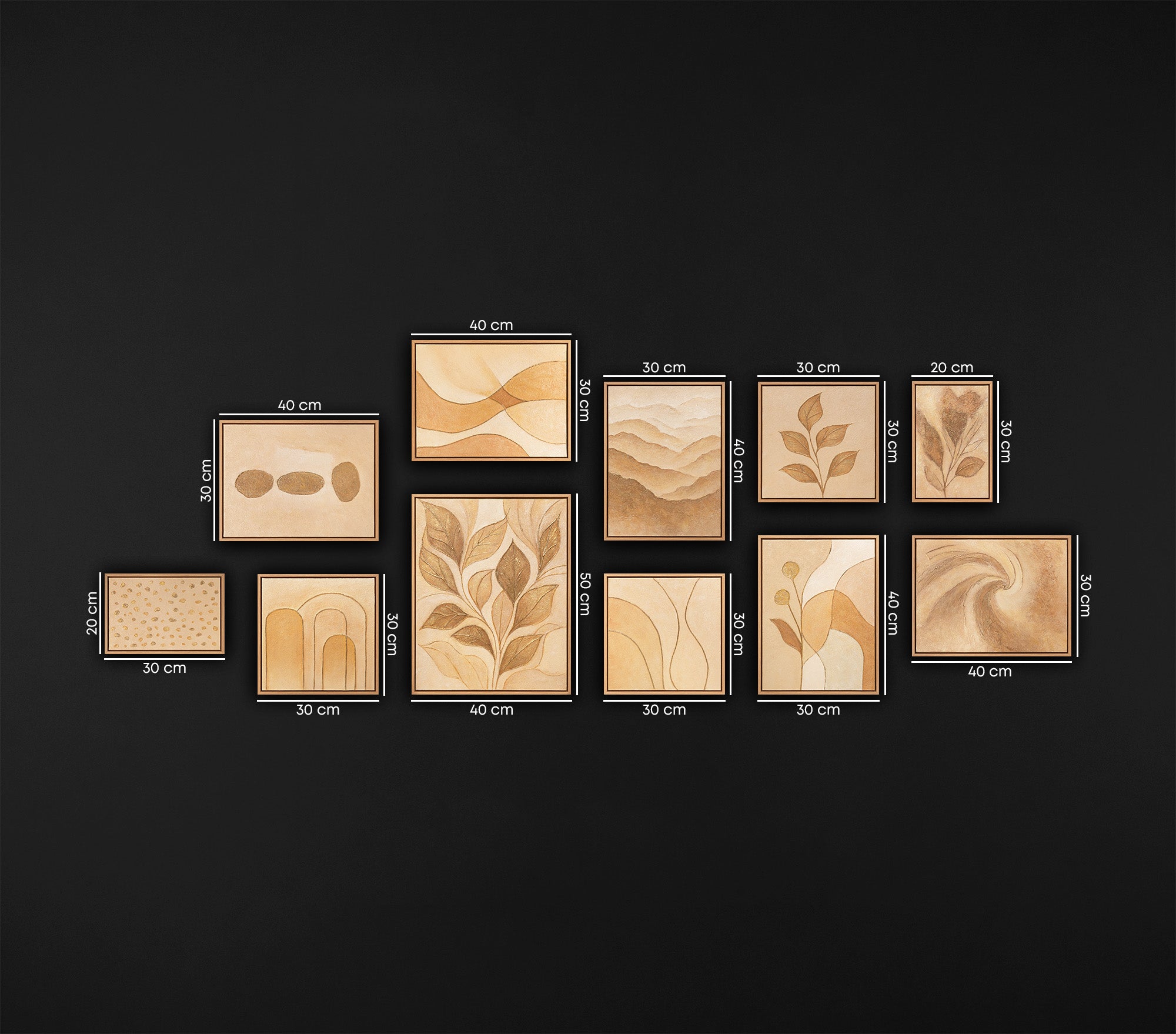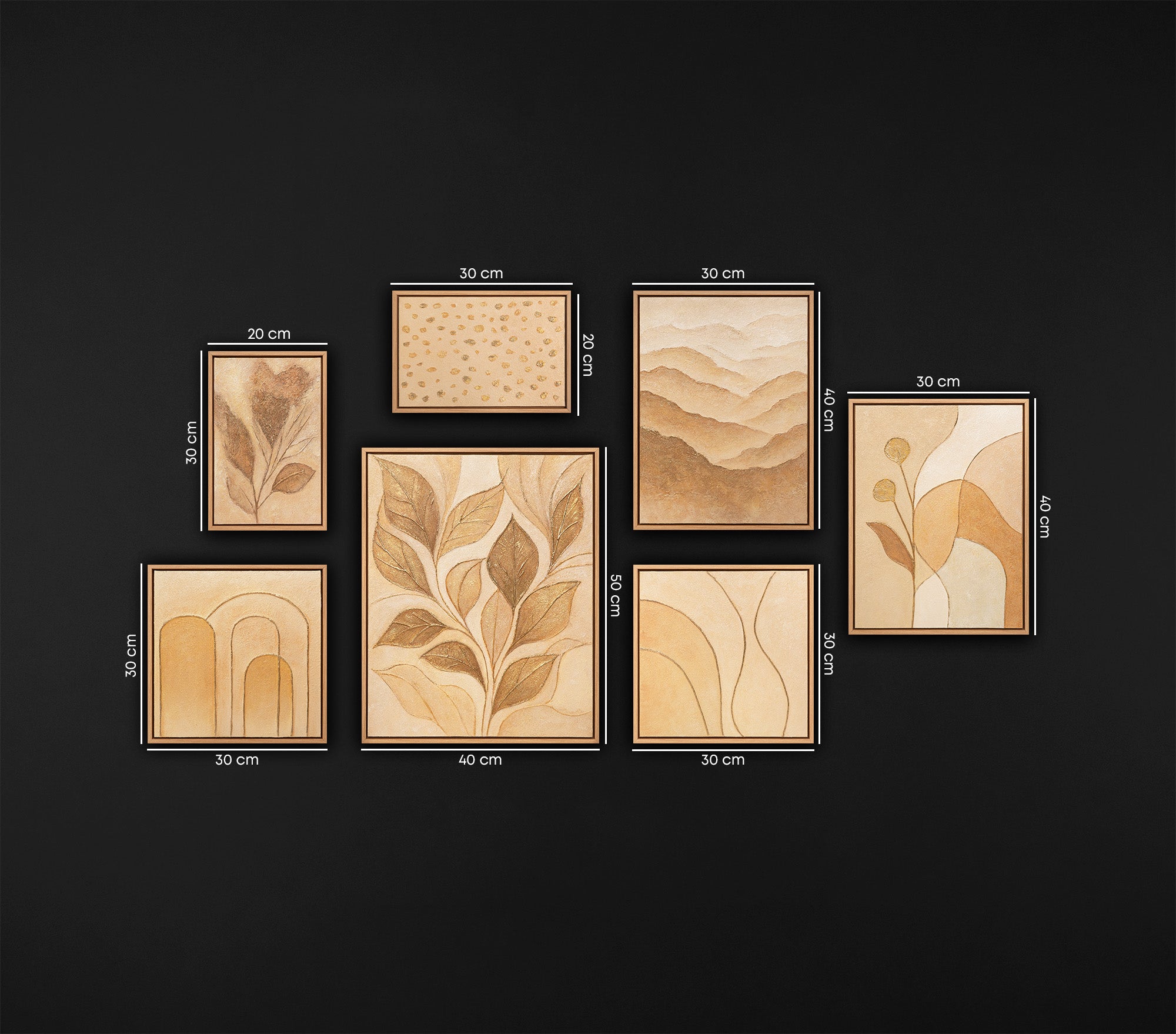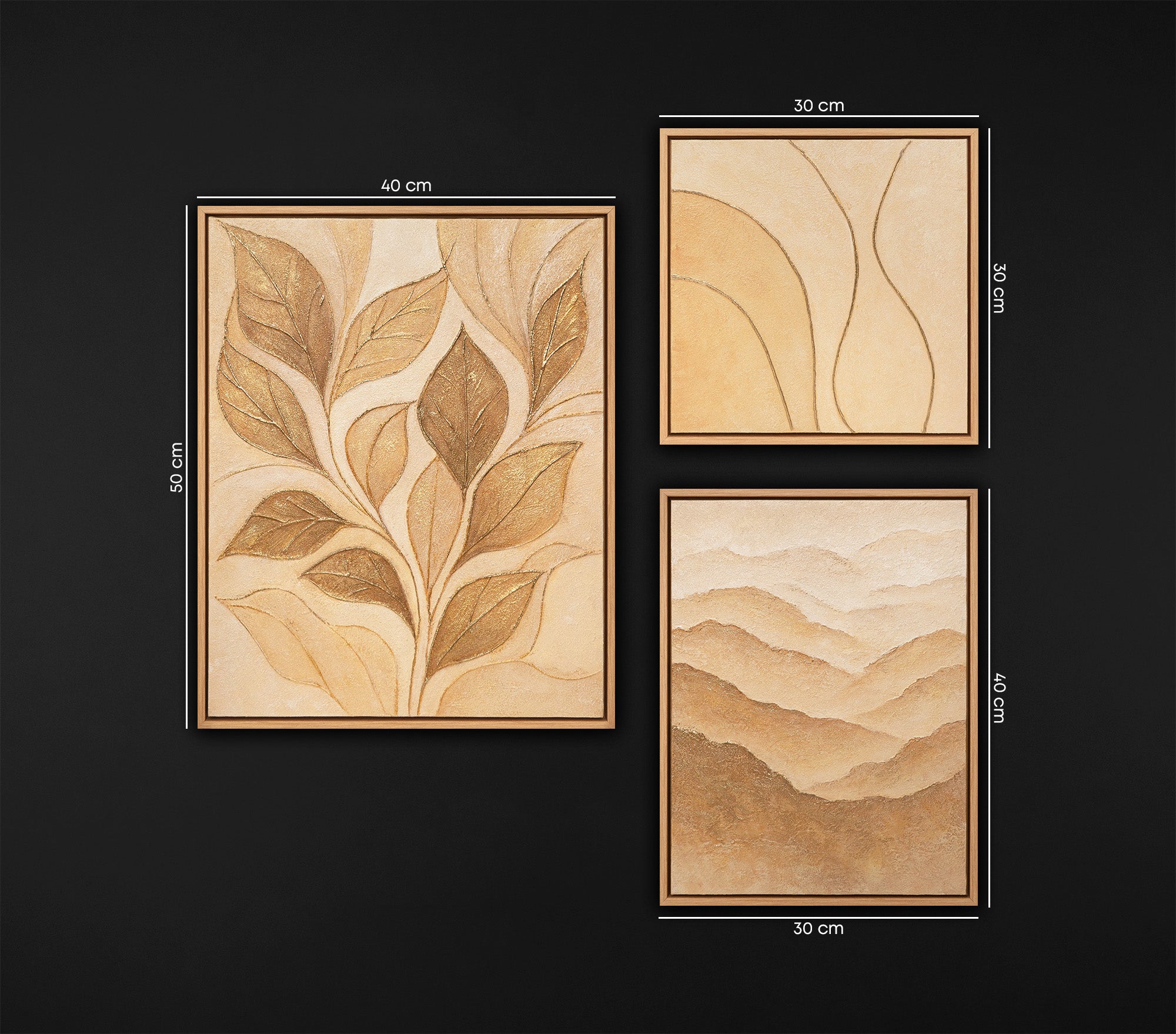 Acryl Gemälde Handgemalt Pflanzenmotiv Bilderrahmen set Beige Farben