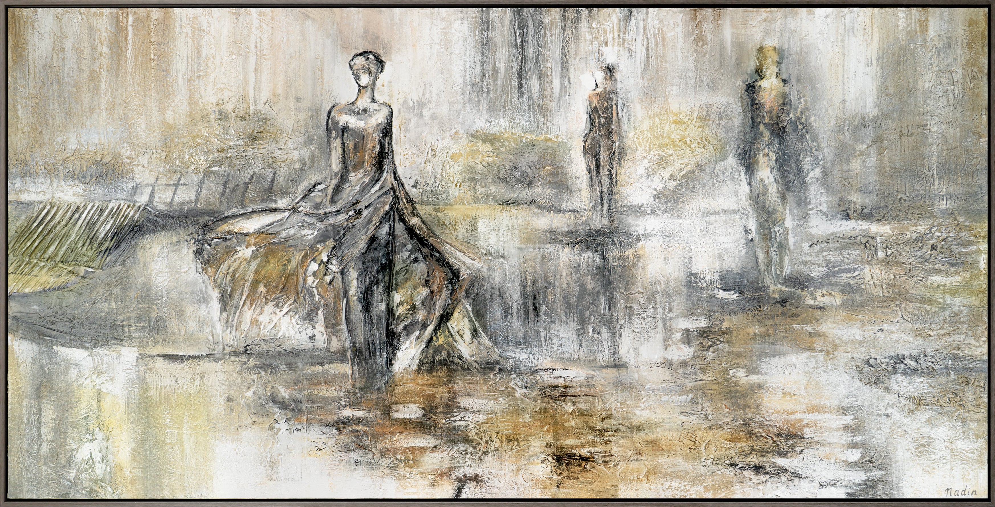 Raadsels, charme en tederheid - zo zou je dit schilderij op canvas kort kunnen omschrijven. Iedereen ziet er zijn eigen verhaal in - de een ziet een mysterieuze vreemde, de ander het moment van een mode show. Dat is wat dit schilderij zo bijzonder maakt. Het schilderij geeft de toon aan voor uw interieur en benadrukt uw persoonlijkheid.