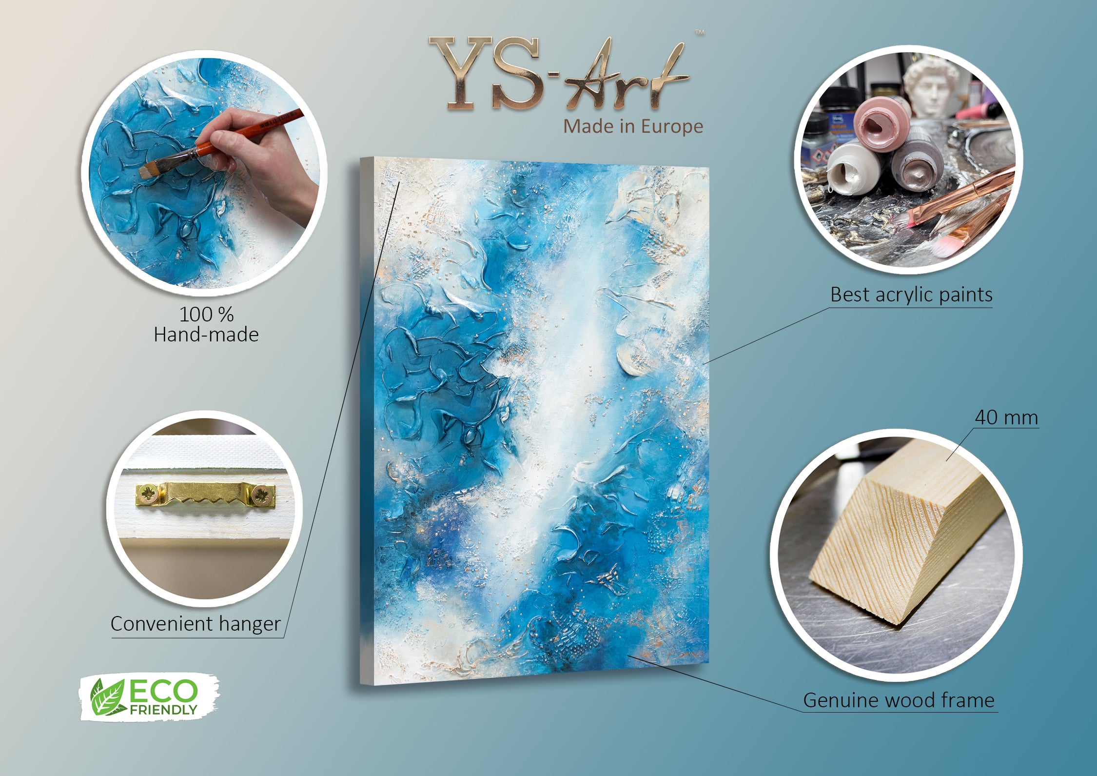 Onze abstracte schilderijen met structuur zijn ontworpen om moderne interieurs stijl en karakter te geven. Dit kunstwerk combineert levendige abstractie met een fris zee-thema, waardoor het een unieke sfeer van rust en ontspanning in uw ruimte brengt. Perfect geschikt voor woningen en appartementen, in de woonkamer, werkkamer of zelfs slaapkamer.