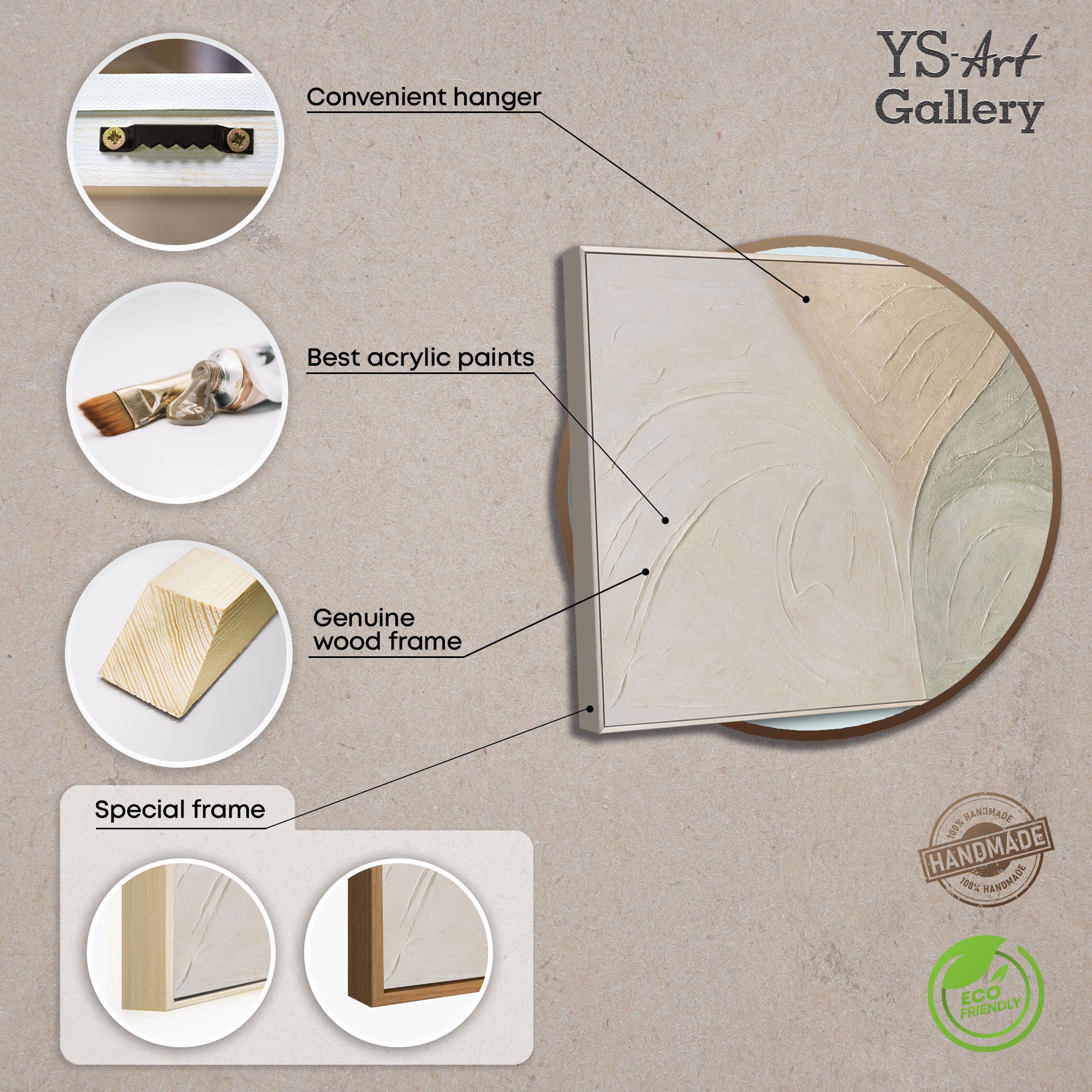 Dit handgeschilderde origineel is geschikt voor ruimtes die behoefte hebben aan helderheid en rust. Het werkt zonder te overheersen, het past erbij en voegt diepte toe, vooral in moderne, minimalistische interieurs met natuurlijke materialen.