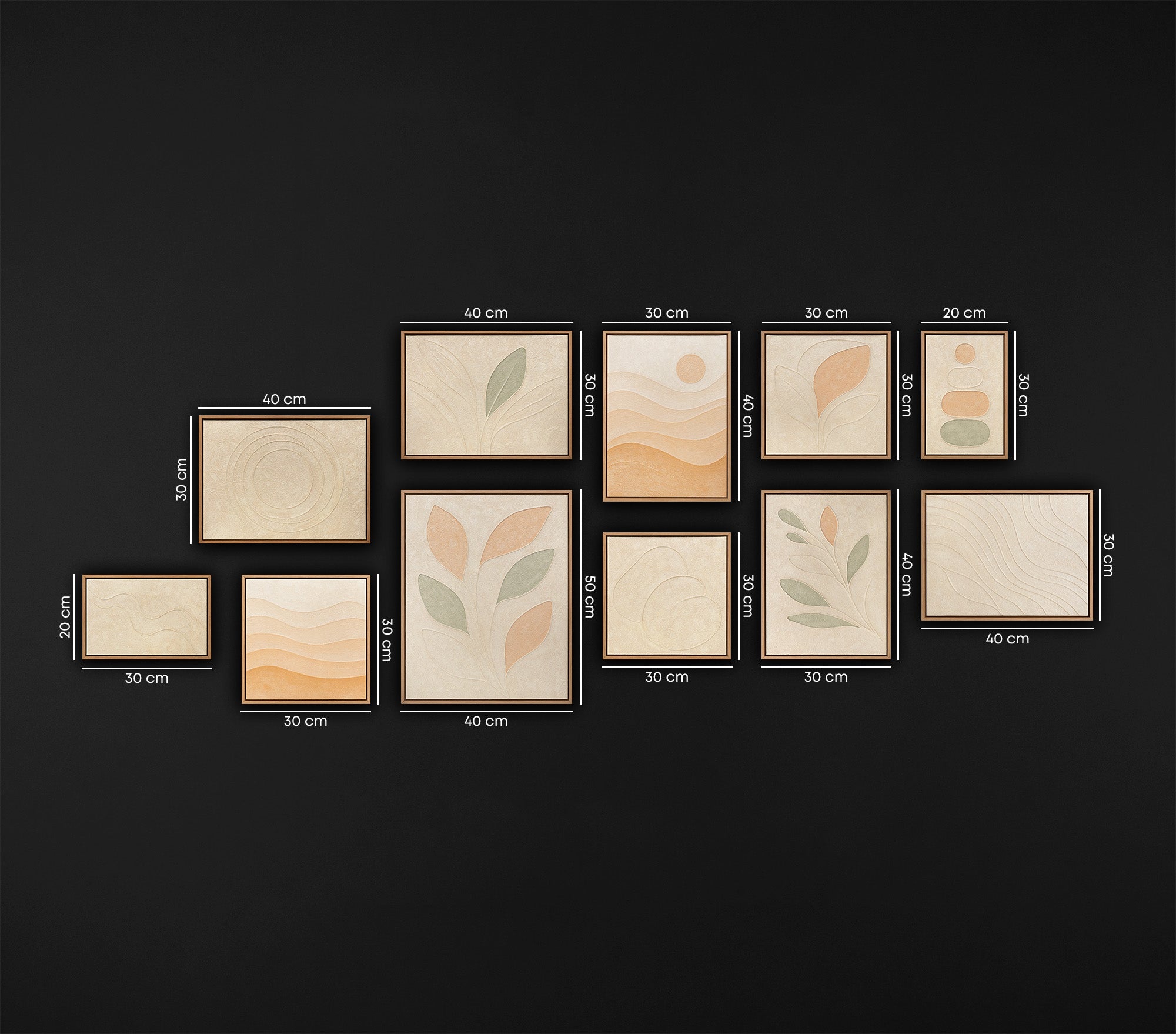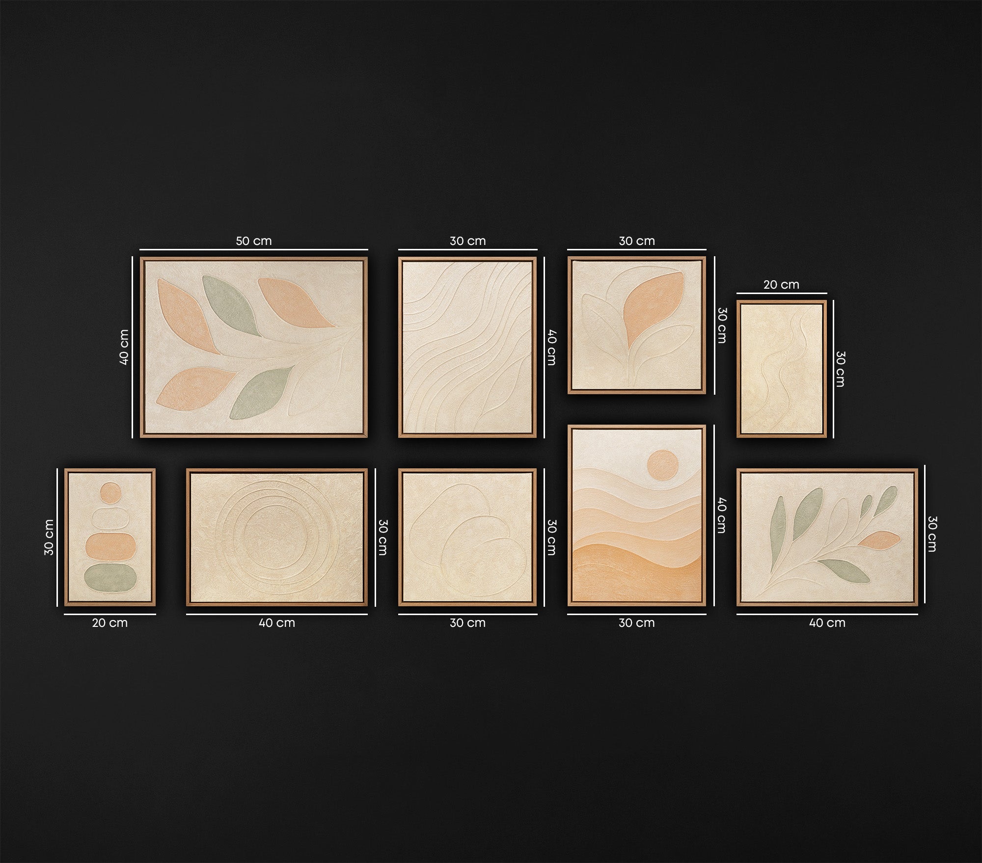 Hauchen Sie Ihrem Zuhause Leben und Abstraktion ein. Verwandeln Sie Ihre Wände in eine private Galerie mit unserem exklusiven Wandbilder Set aus drei strukturierten Kunstwerken. Jedes Werk ist ein 100%iges Unikat aus unserem Atelier YS-Art. Diese Kollektion verbindet moderne, minimalistische Ästhetik mit der Tiefe organischer Formen.