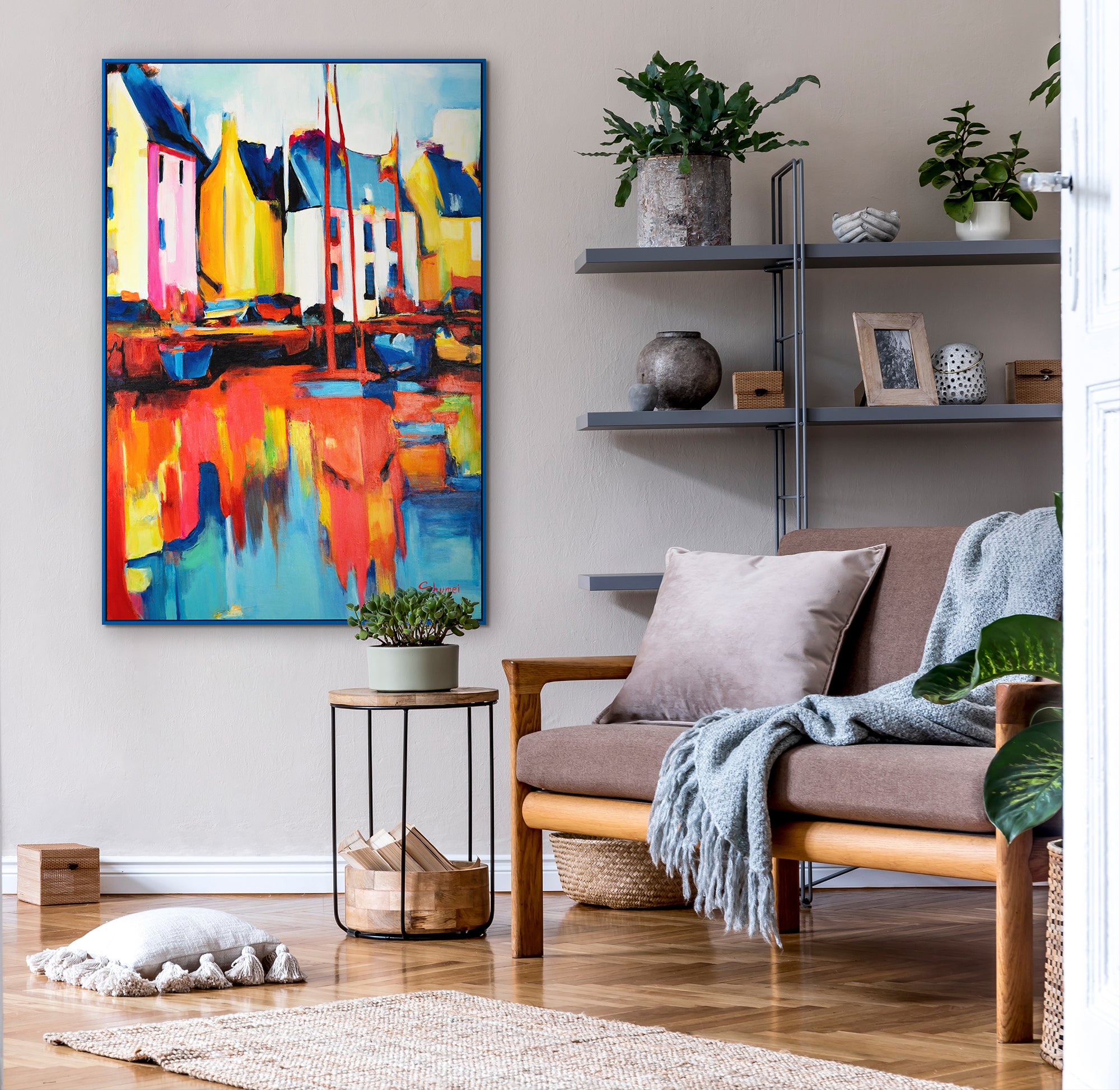 • Abstraktes Acrylbild Handgemalt Stadt am Wasser