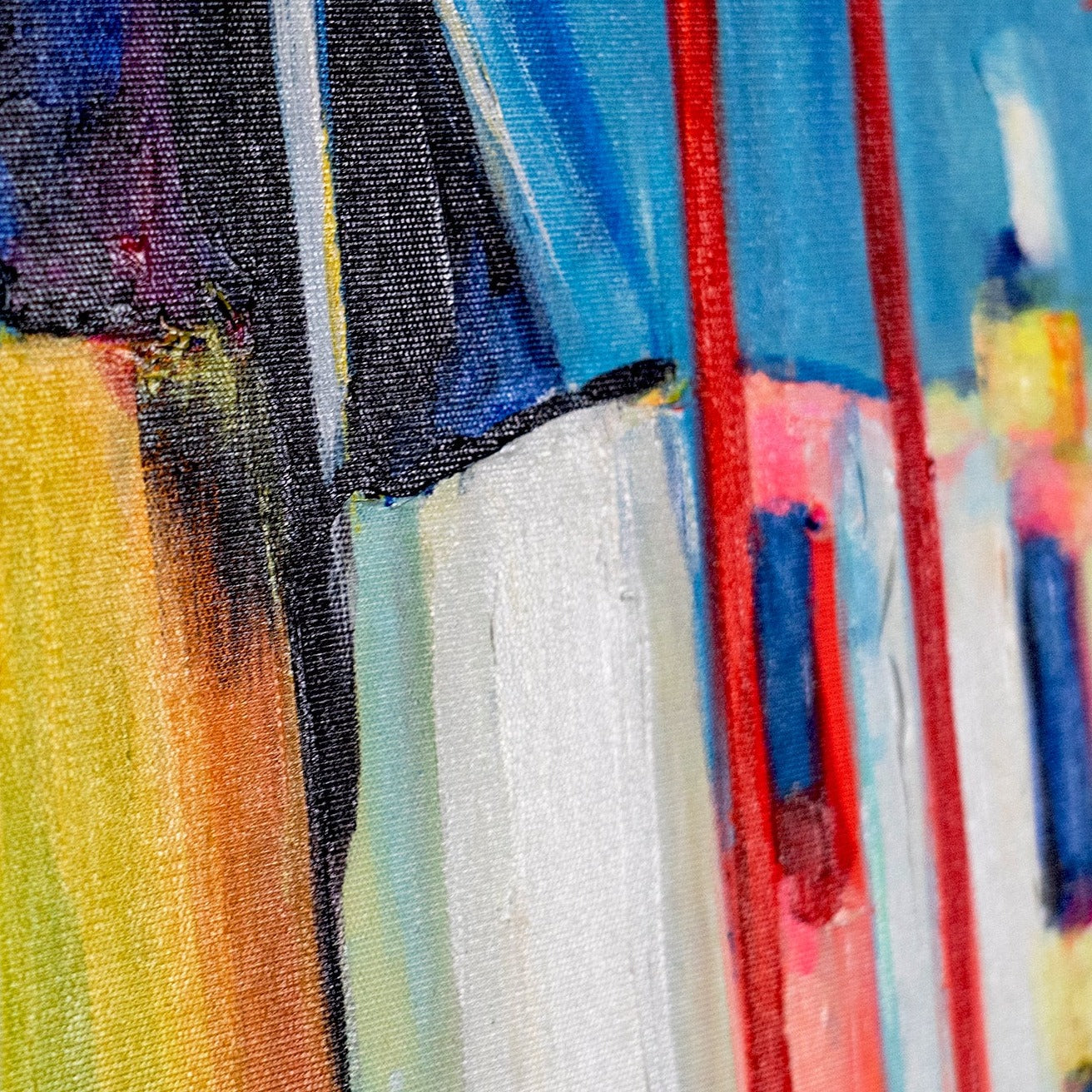 • Handgemalte Acrylkunst Farben Blau Rot Gelb Struktur