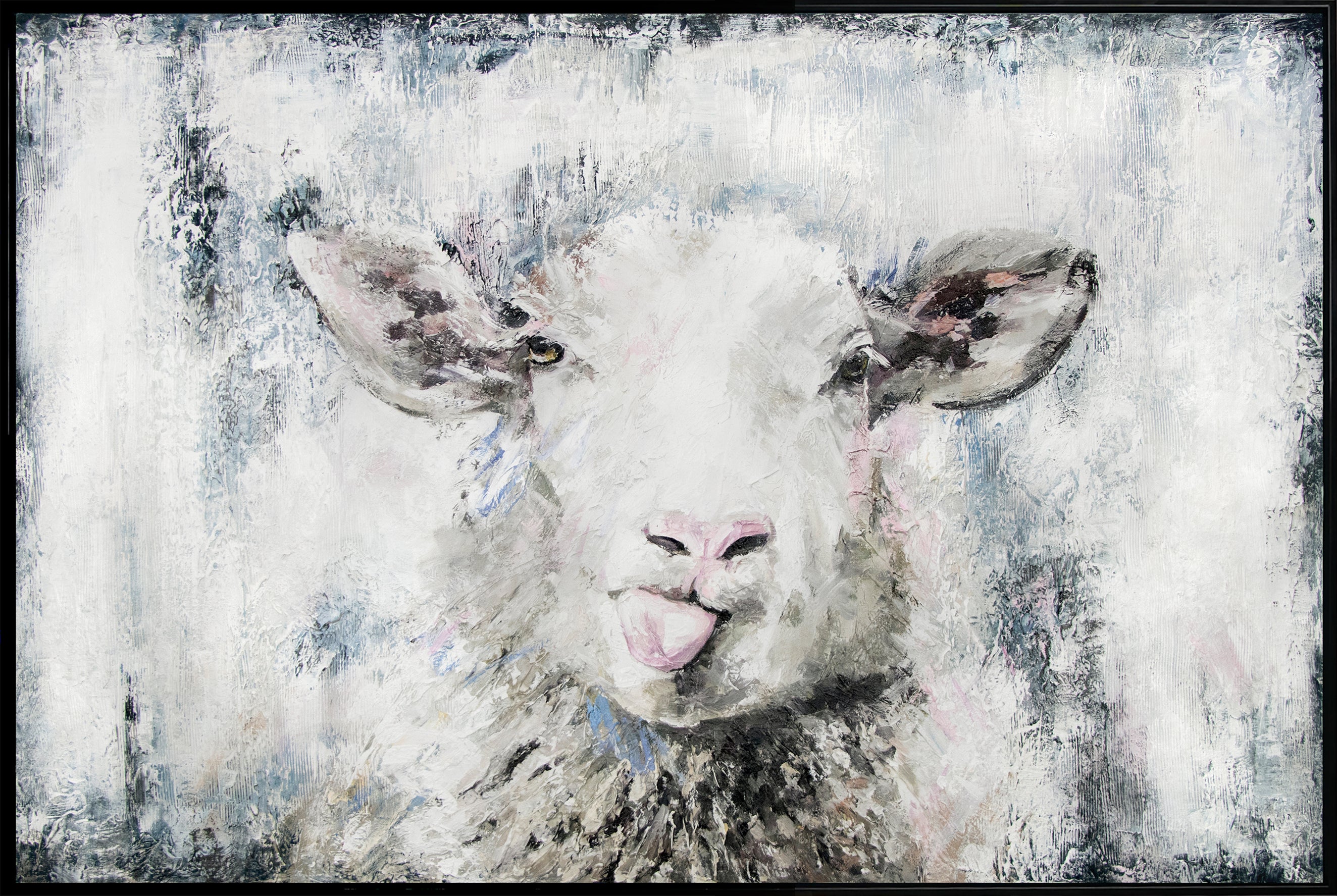 Handgeschilderd Acryl "Gelukkig Schaap" met Frame – Moderne Kunst voor Uw Woonkamer