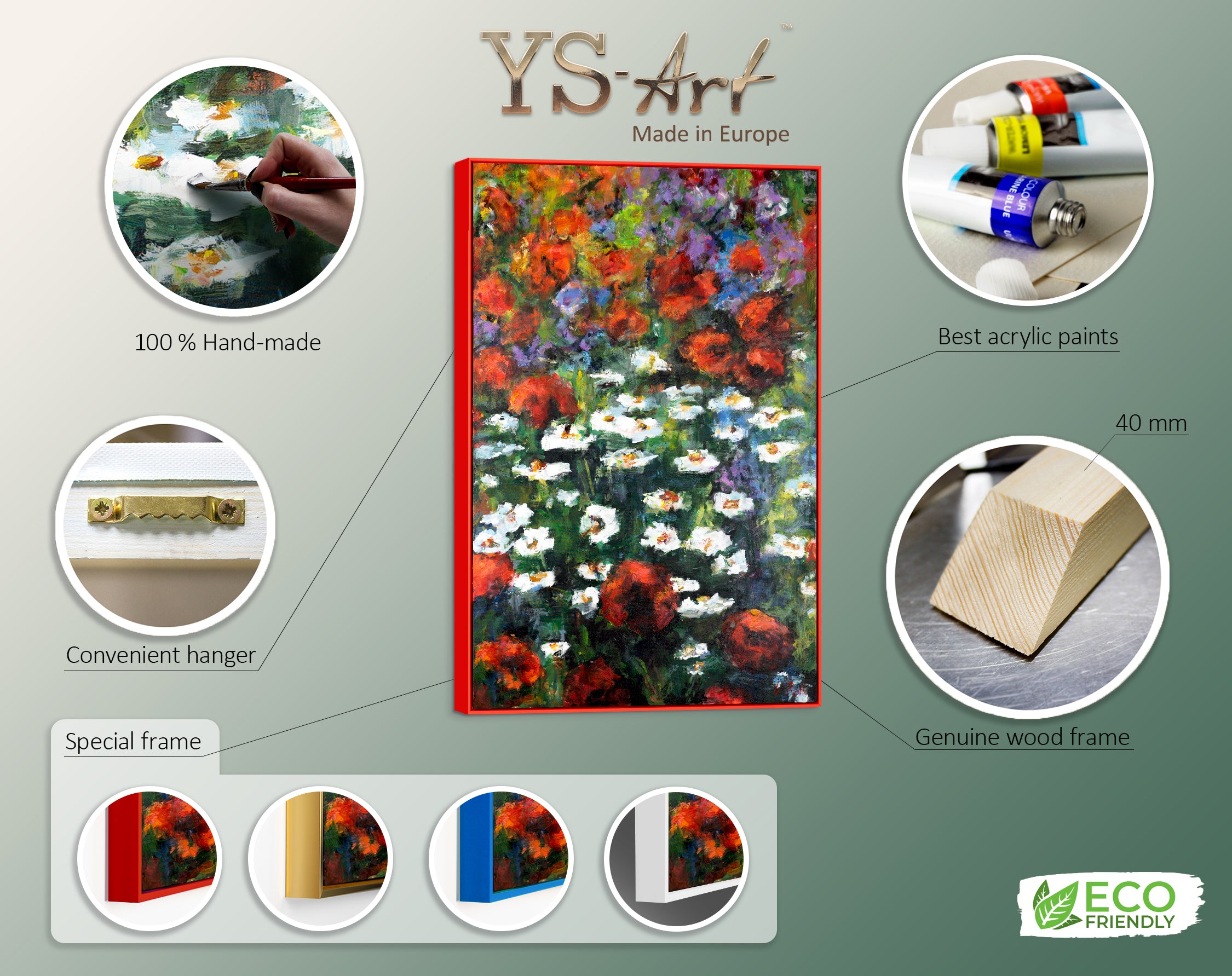 • Handgeschilderde schilderijen op canvas "Bloeiende Uitgestrektheden", ingelijste wandschilderijen