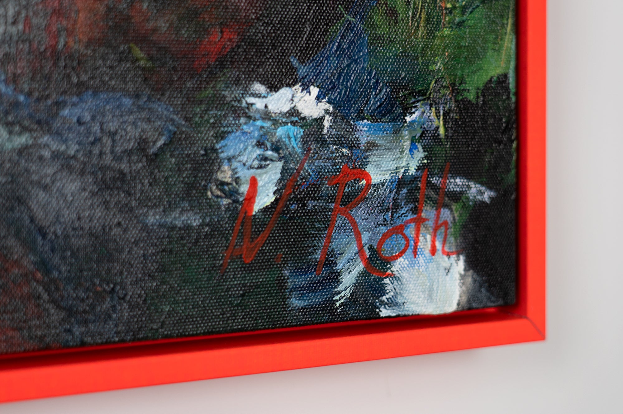 • Struktur-Detail des Acrylauftrags mit roten Blüten