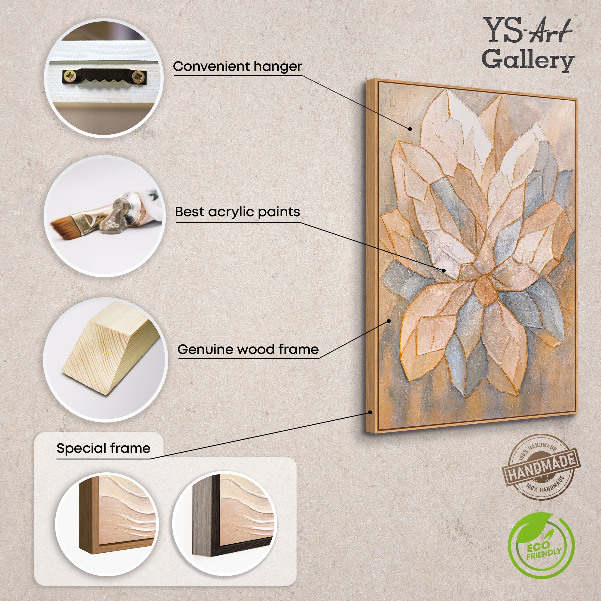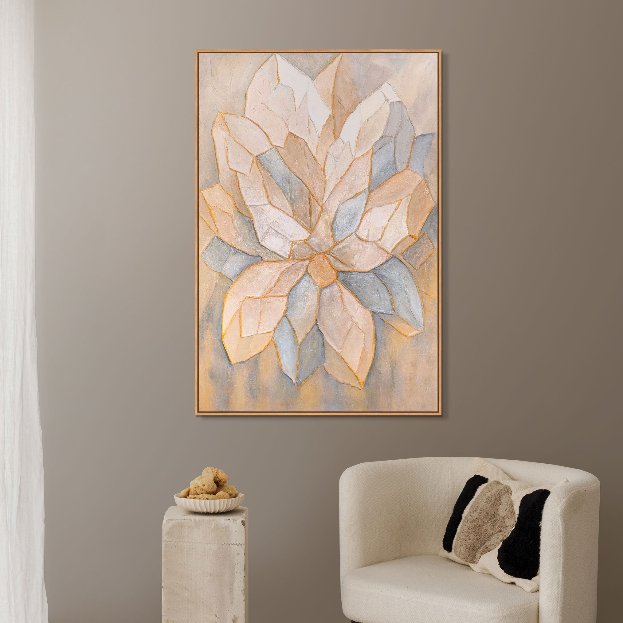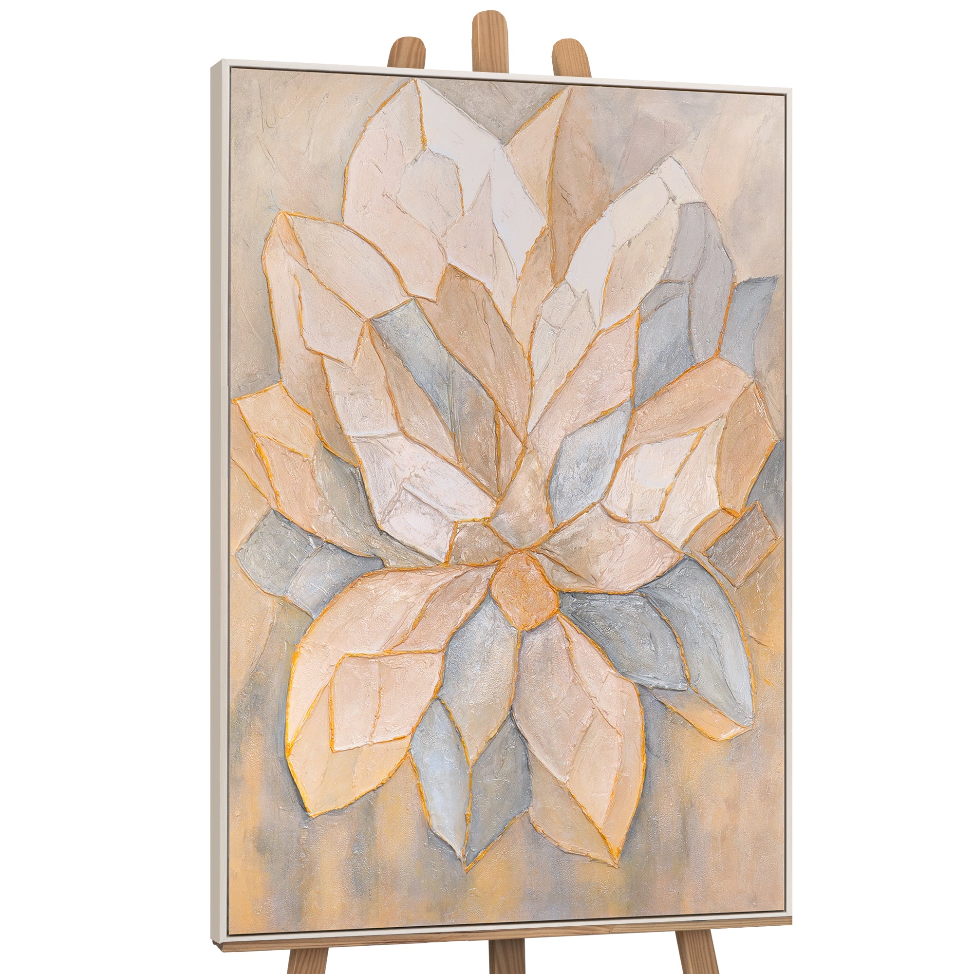 • Handgemaltes Acrylgemälde mit Rahmen „Facetten der Blütenblätter“ – Abstrakte florale Wandkunst
