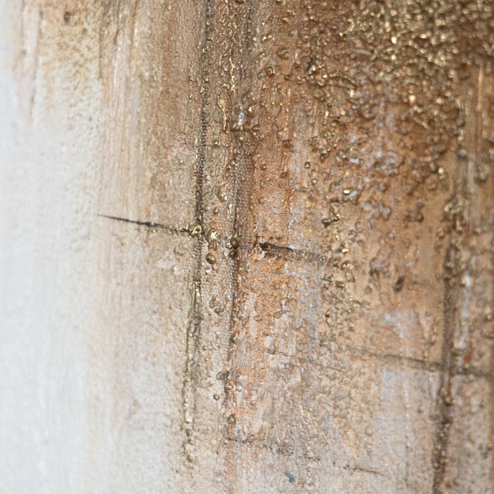 „Honigdunst“ ist ein handgemaltes Acrylgemälde, das durch seine warme Farbkomposition aus Gold- und Beigetönen beeindruckt. Mit feiner Strukturtechnik und sanften Übergängen entsteht eine harmonische Ausstrahlung, die an schimmernden Nebel im Sonnenlicht erinnert. Die reliefartige Oberfläche verleiht dem Werk Tiefe und Lebendigkeit, wodurch es zu einem faszinierenden Blickfang wird.