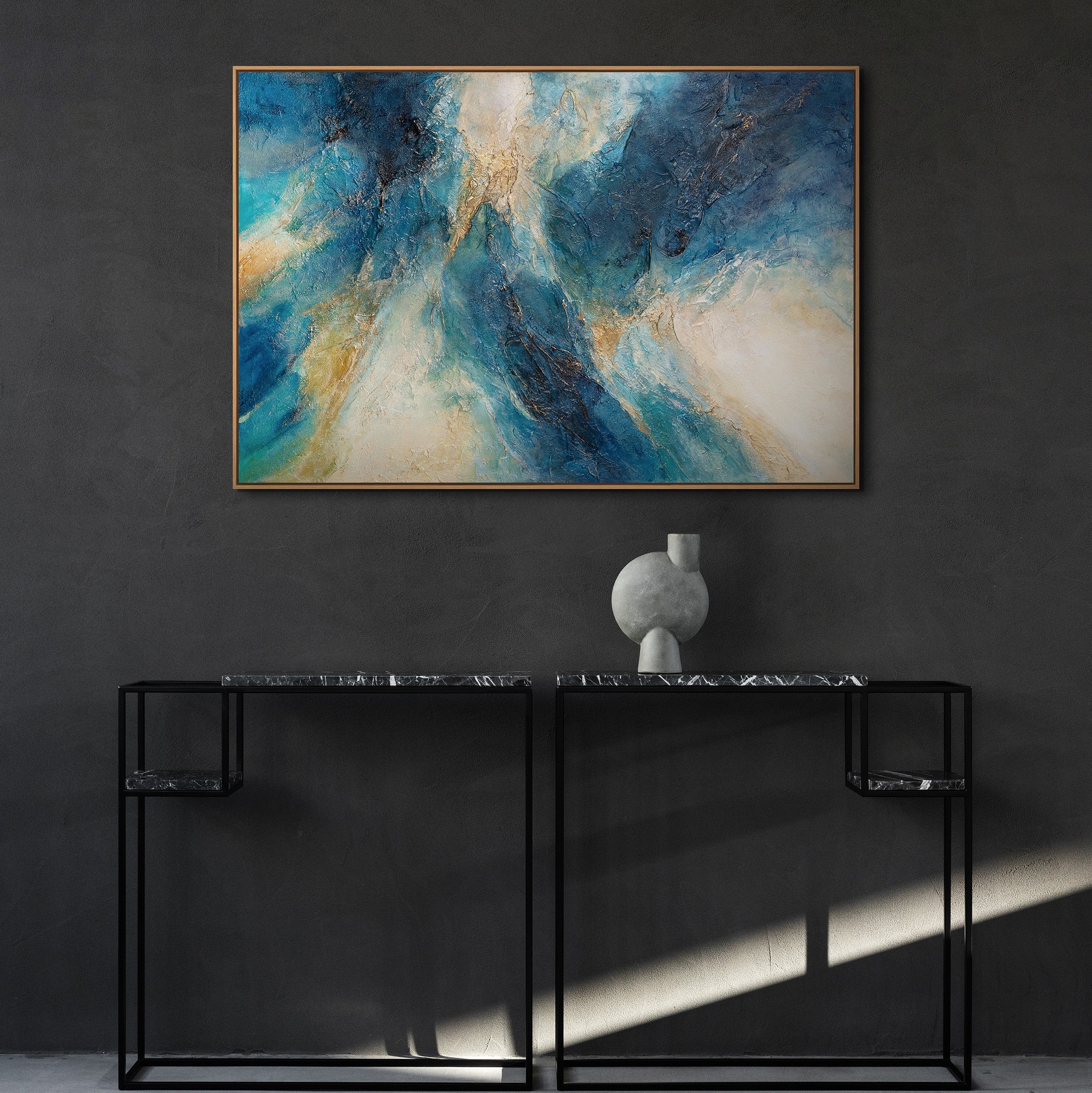 Dit handgeschilderde, gestructureerde schilderij past perfect in moderne, nautische en elegante interieurs. De dynamische compositie vormt een opvallend middelpunt in woonkamers, kantoren of ruime hallen. Dankzij de hoogwaardige afwerking, rijke textuur en schitterende kleurdiepte verfraait dit kunstwerk elke ruimte en brengt het een gevoel van ruimtelijkheid en rust.