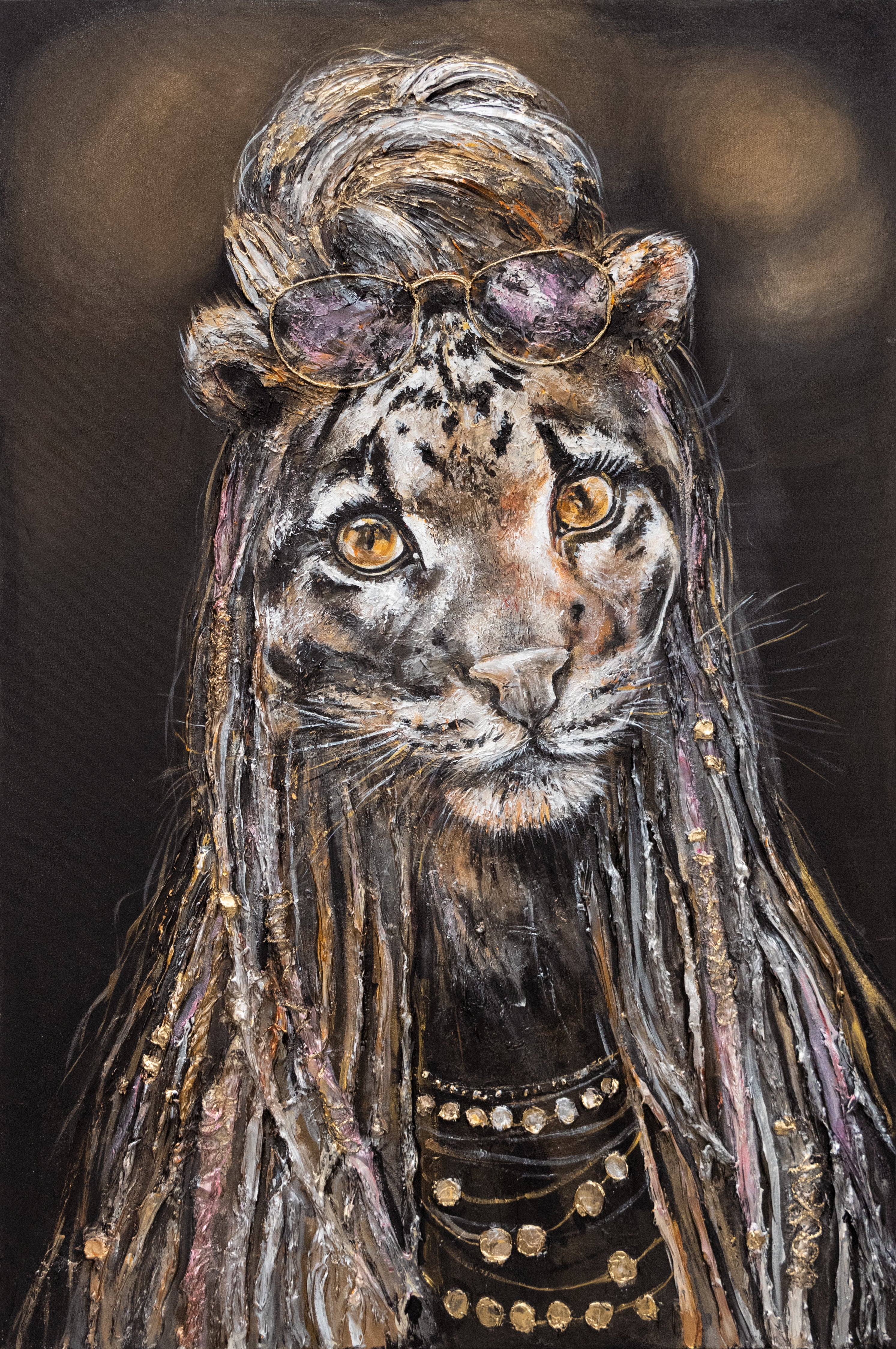 Dit schilderij straalt moderne bohemien elegantie uit – een mix van gedurfde artistieke vrijheid en stijlvolle verfijning. De textuur en het kleurgebruik zorgen voor diepte, beweging en een gevoel van exclusiviteit. Ideaal voor luxe interieurs, citylofts, ruime woonkamers of creatieve werkplekken.