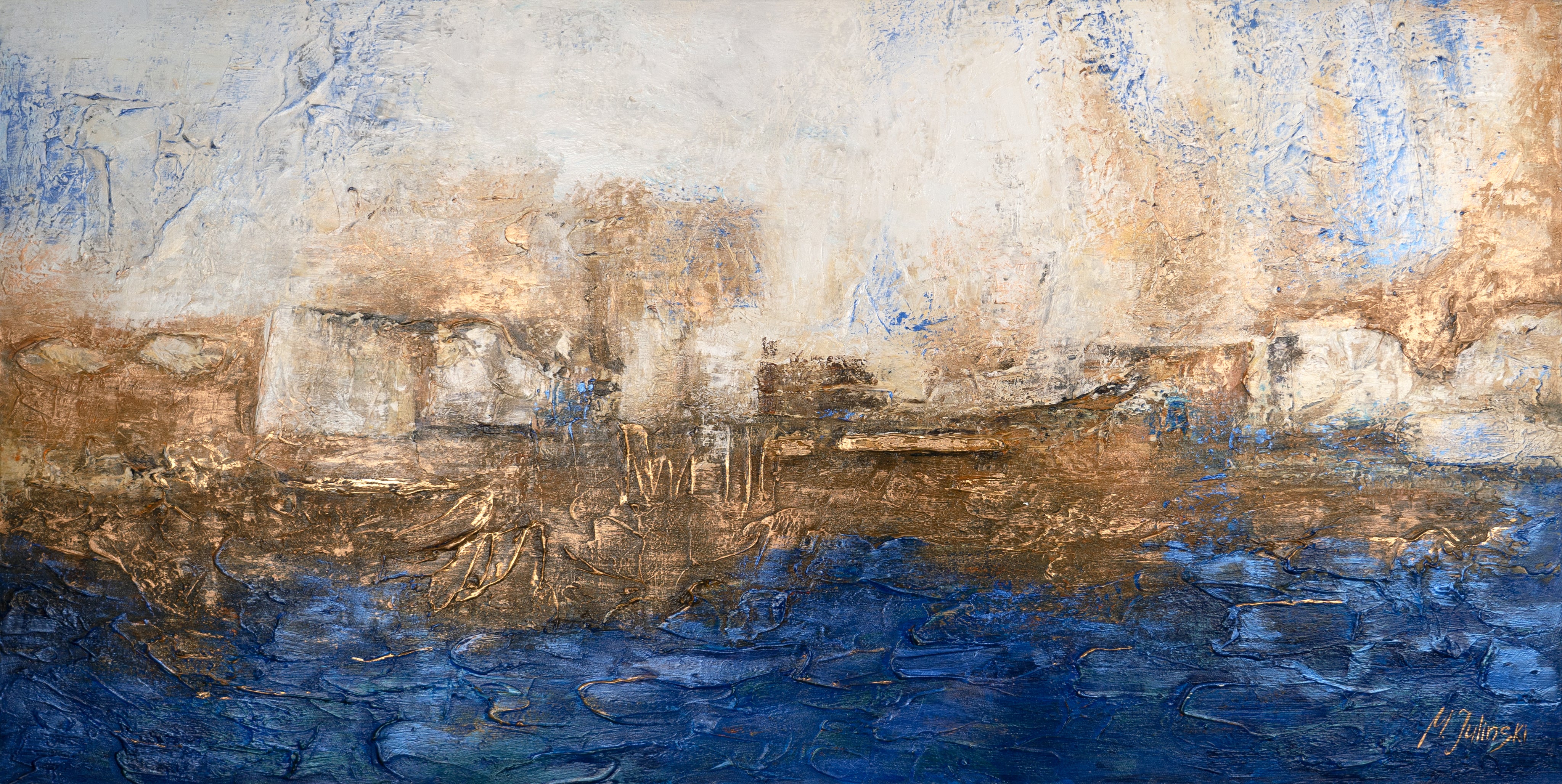 Breng een vleugje elegantie in uw huis met dit indrukwekkende handgeschilderde schilderij. De harmonieuze kleurnuances en de unieke textuur creëren een rustgevende en toch fascinerende sfeer. Dit kunstwerk is volledig met de hand gemaakt, waardoor het een uniek stuk is. Geniet van gratis levering rechtstreeks naar uw huis.